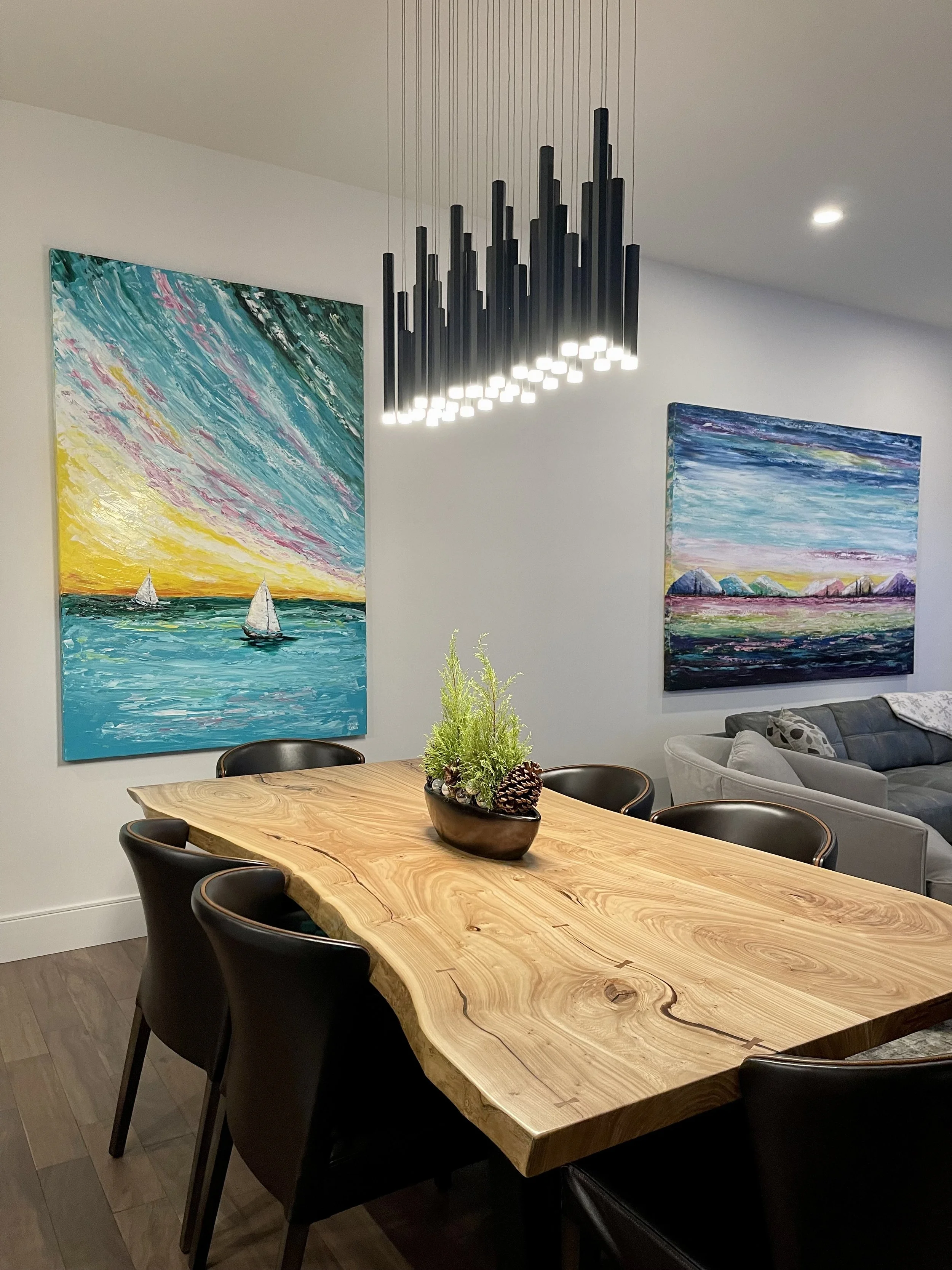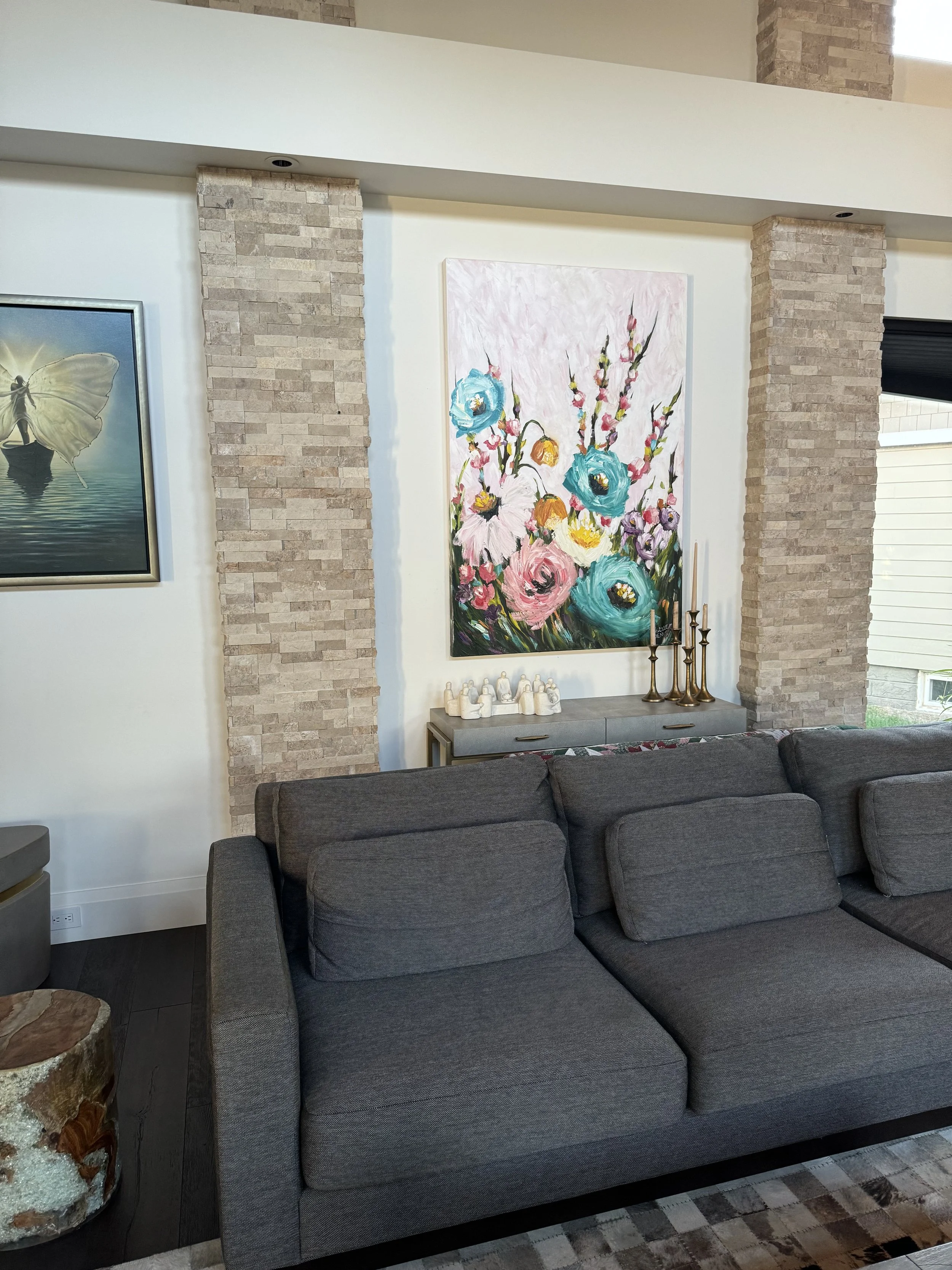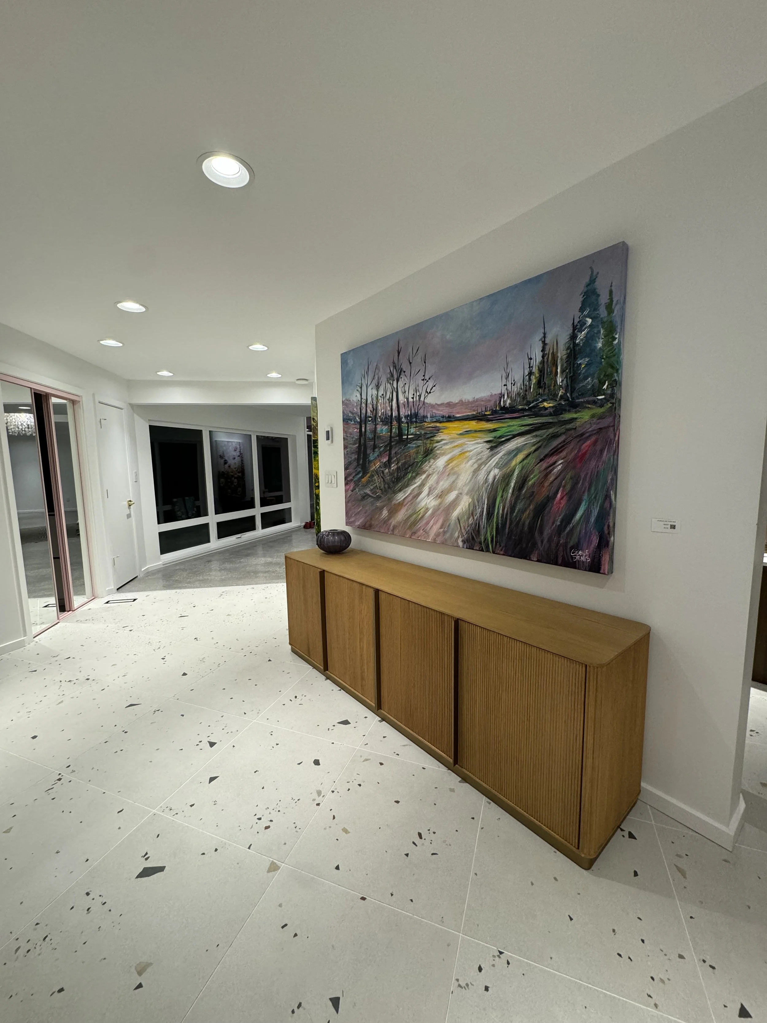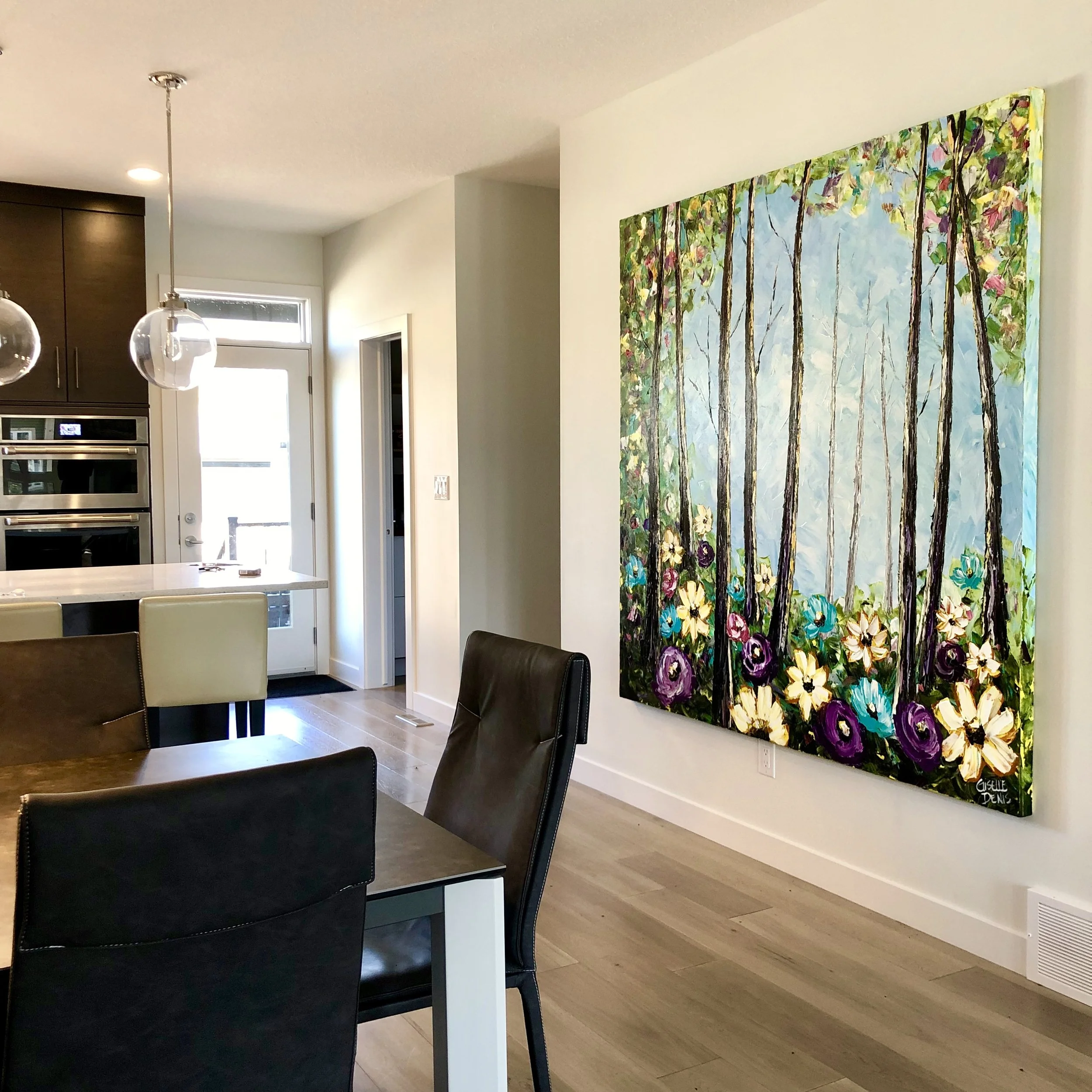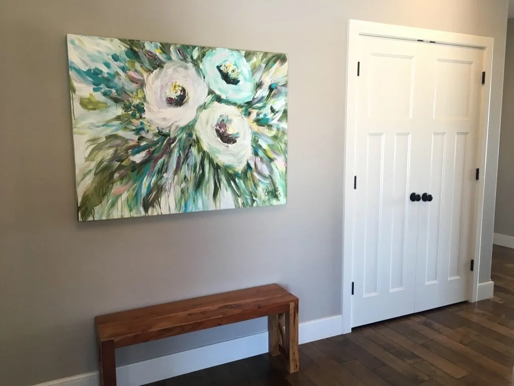 These are examples of Giselle’s in different spaces to help guide you when you are considering art for your space. If you are curious as to what shape a size should go into your space, consider these as good examples to help you in the art selection process. You can also send Giselle photos of your space and she can help with sizing and placement of art for your space. Whether you are looking for art for your home, office or place of business, Giselle is here to help.