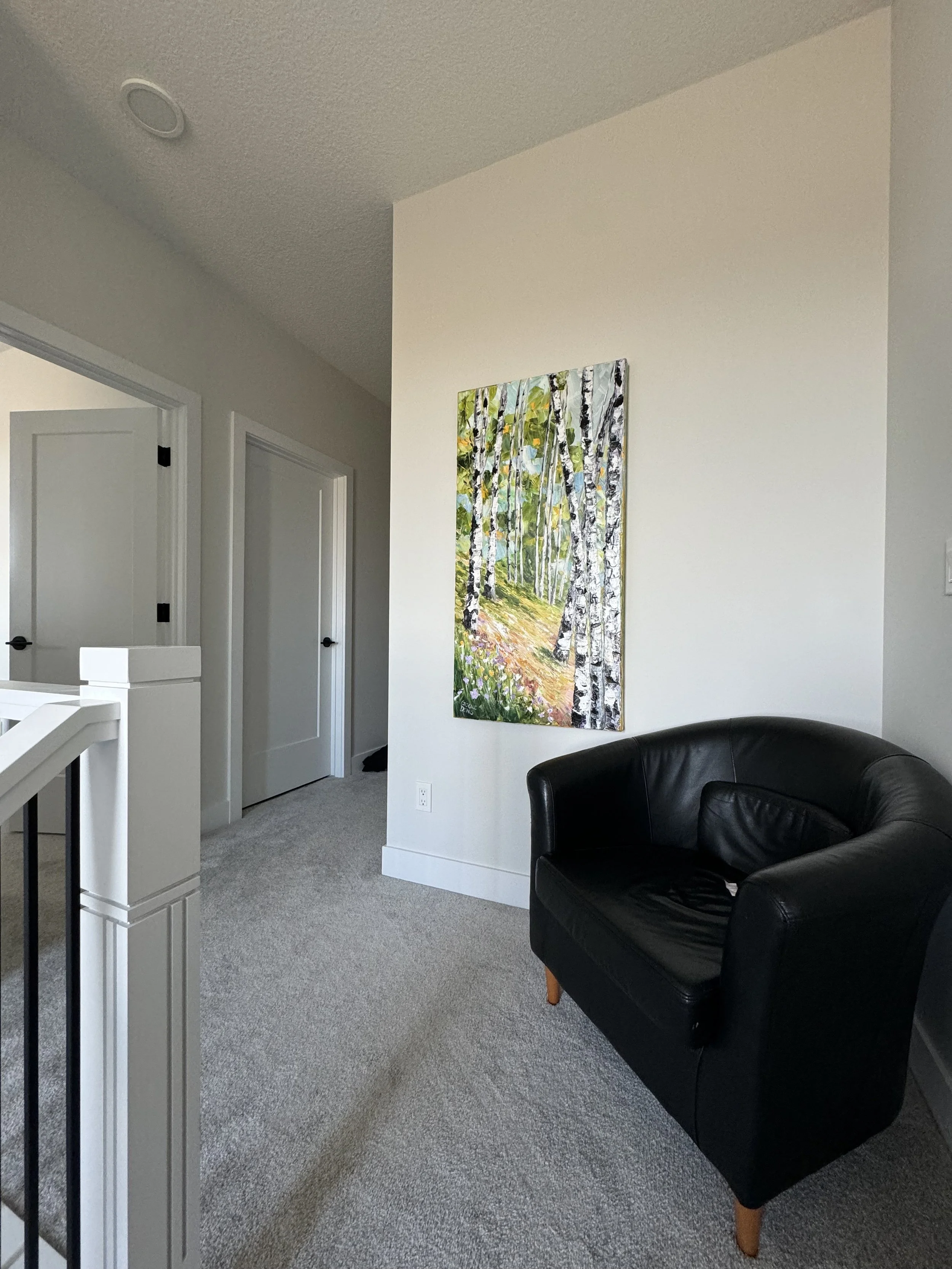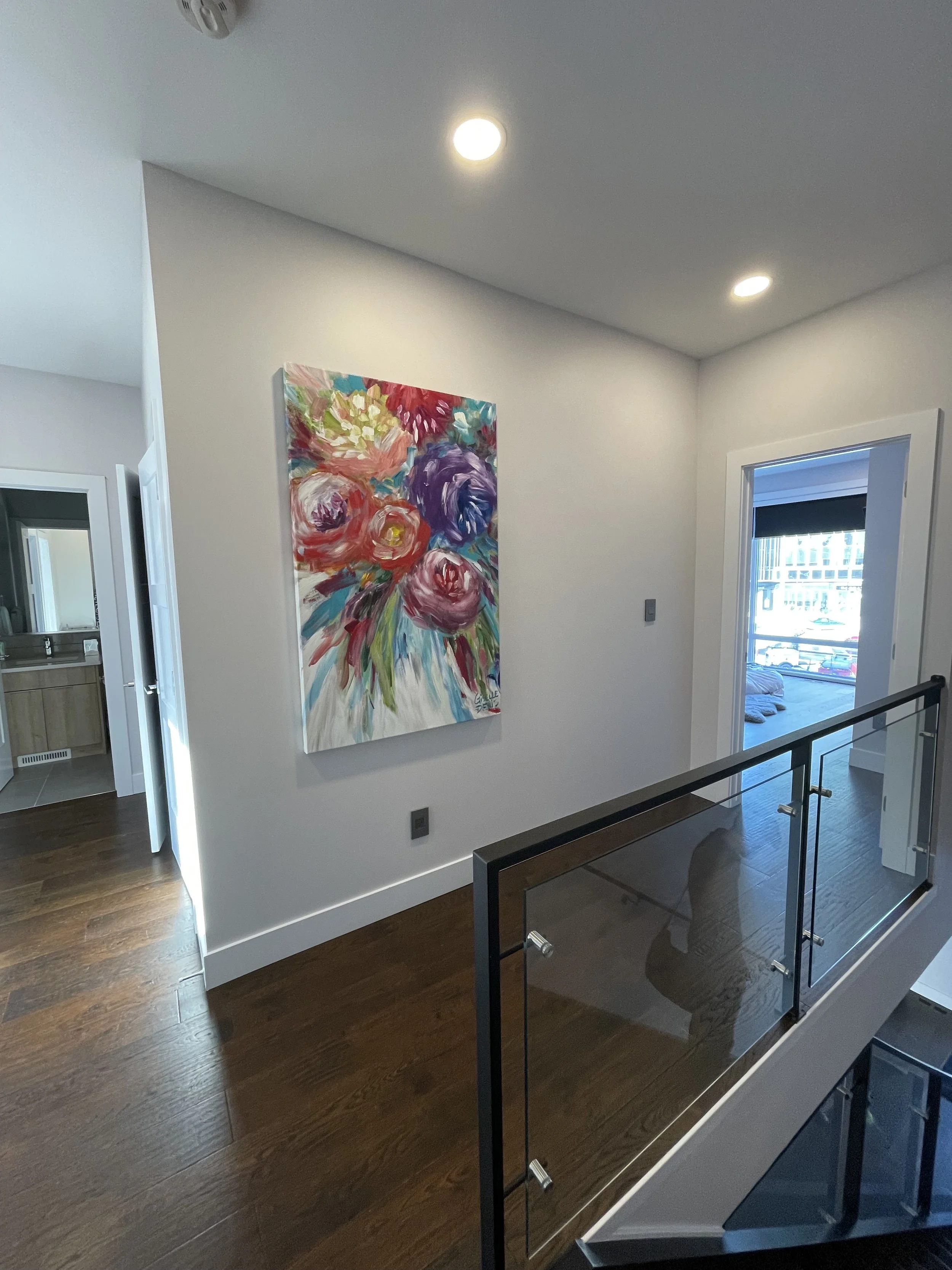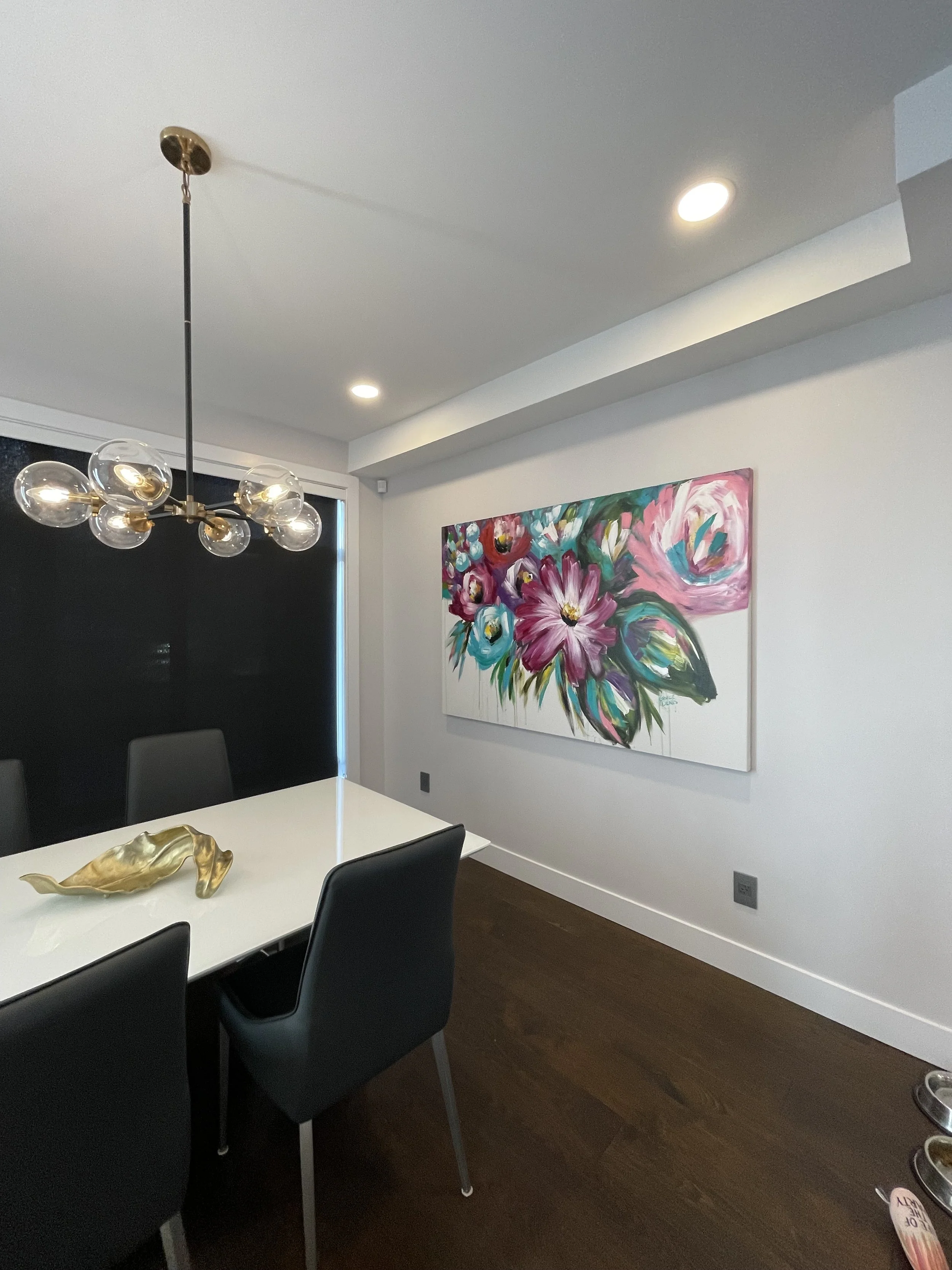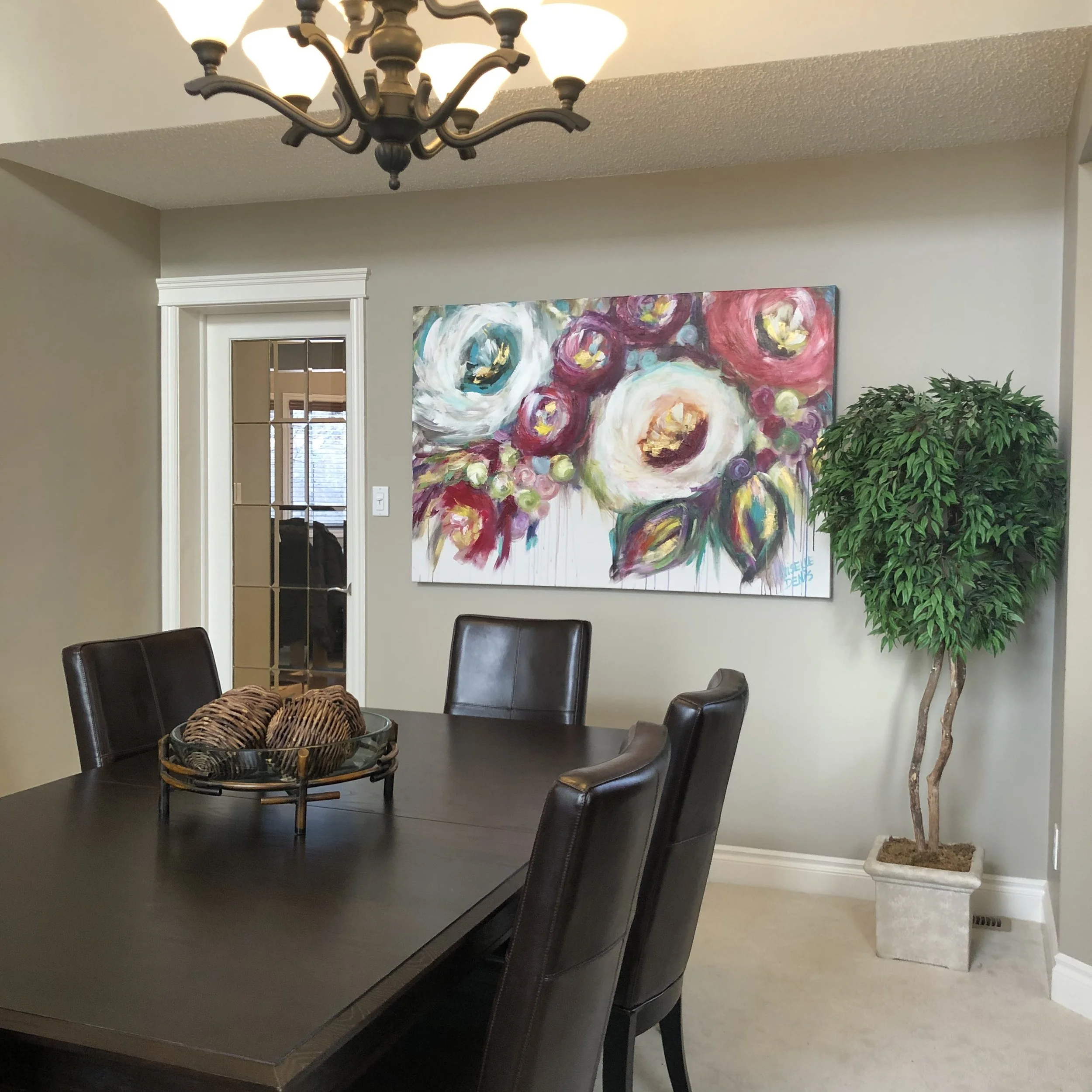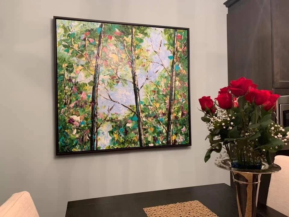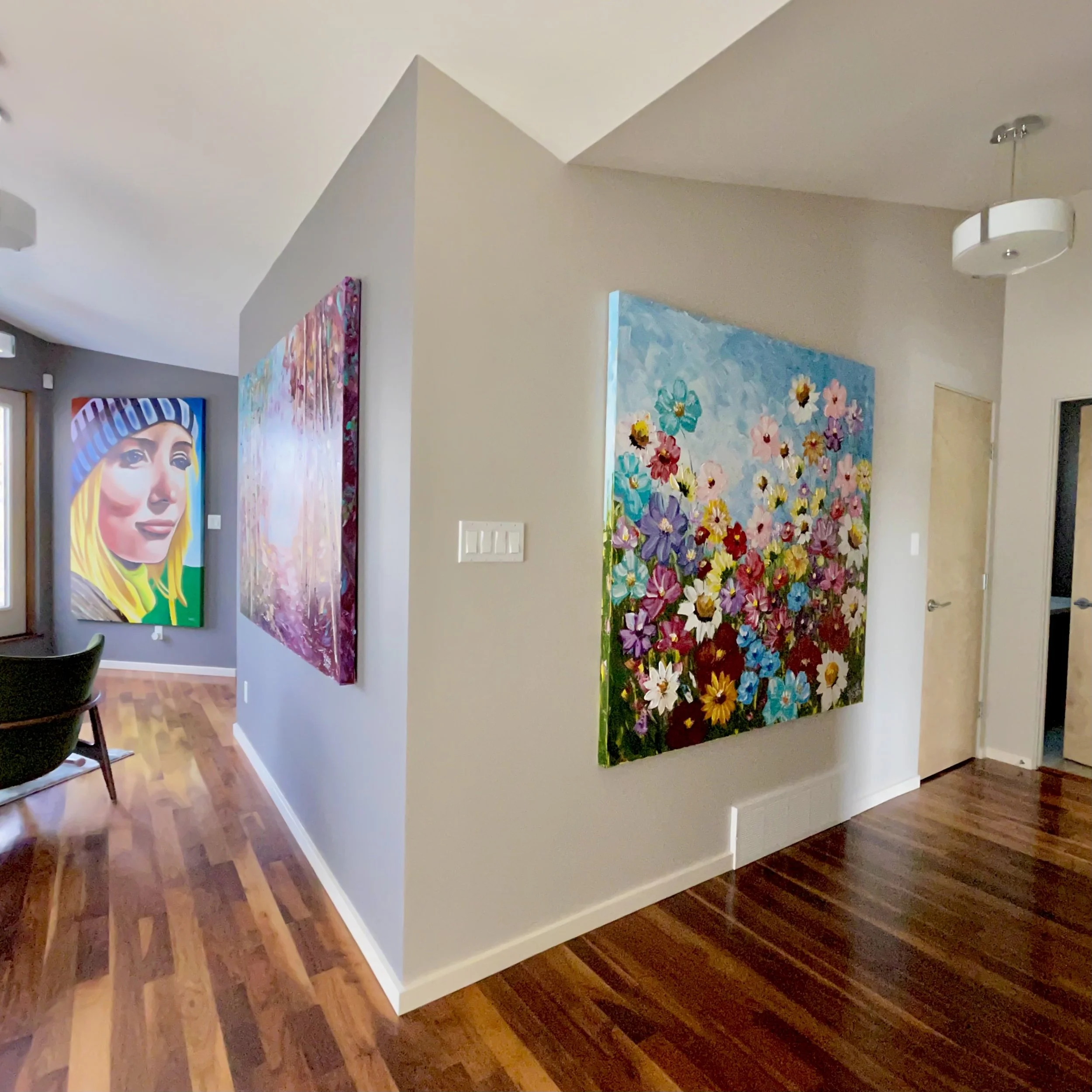 These are examples of Giselle’s in different spaces to help guide you when you are considering art for your space. If you are curious as to what shape a size should go into your space, consider these as good examples to help you in the art selection process. You can also send Giselle photos of your space and she can help with sizing and placement of art for your space. Whether you are looking for art for your home, office or place of business, Giselle is here to help.