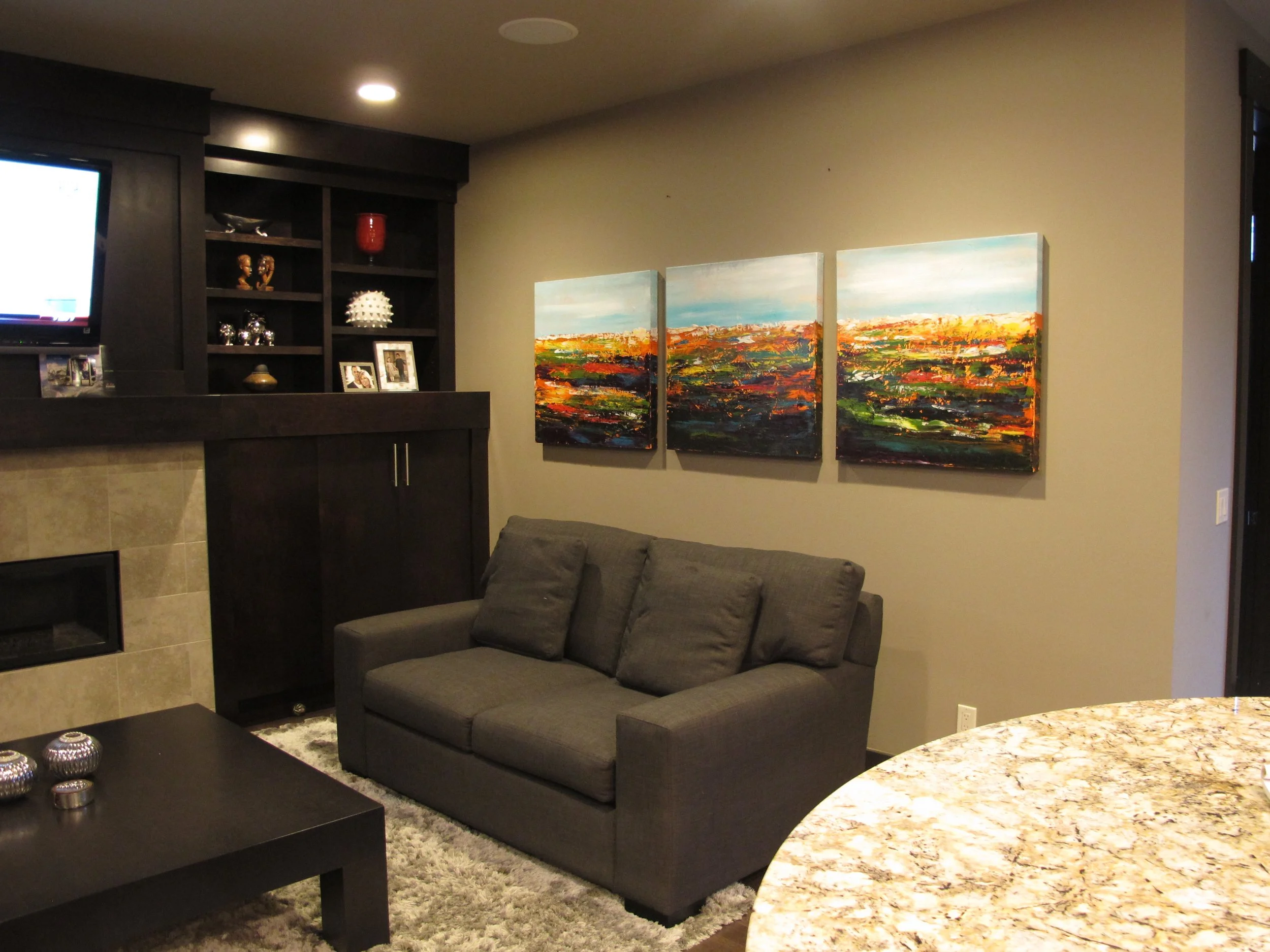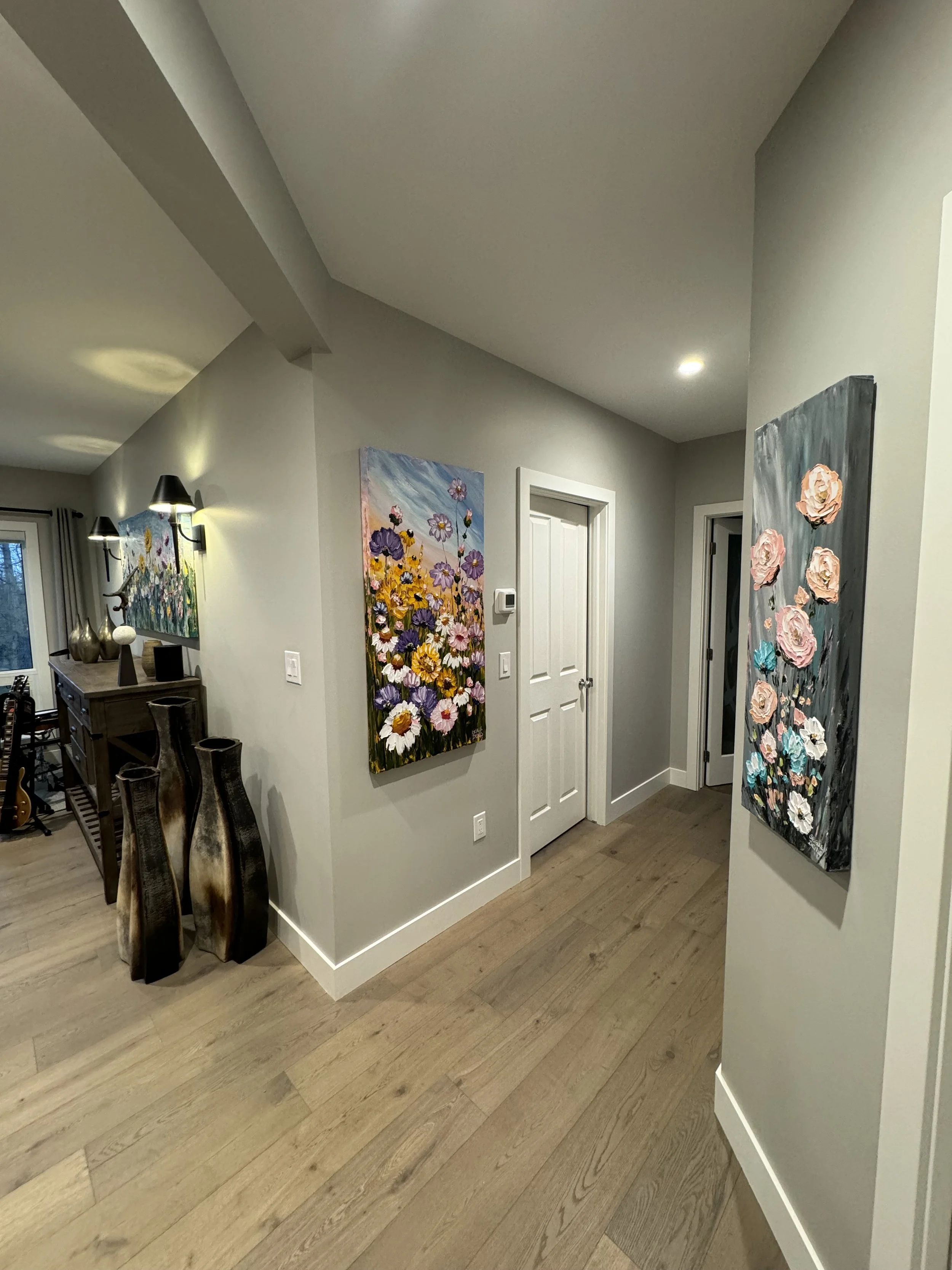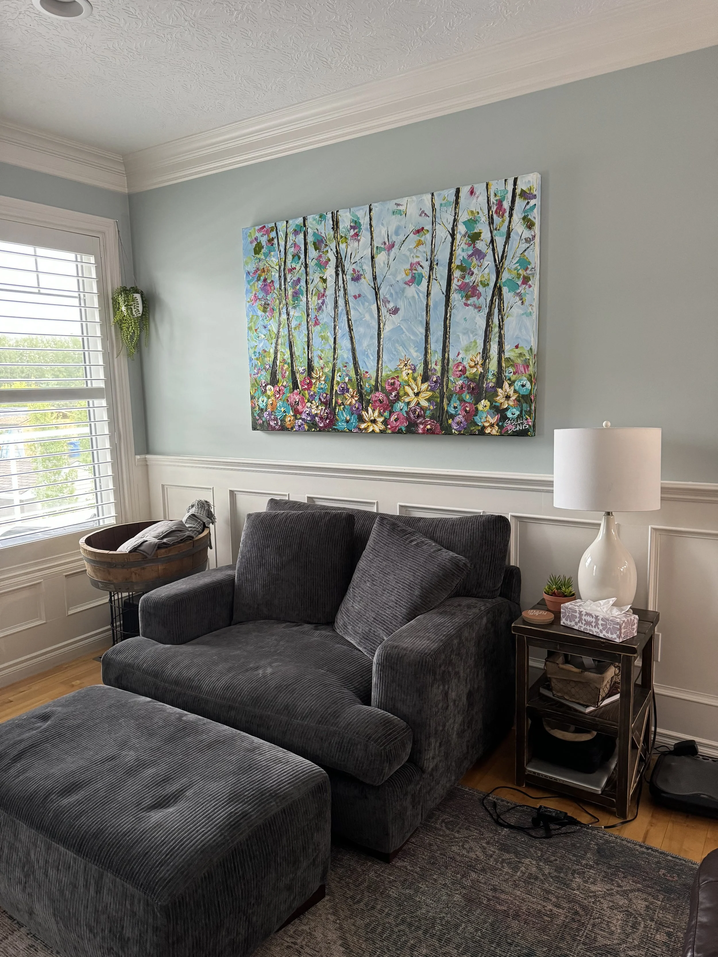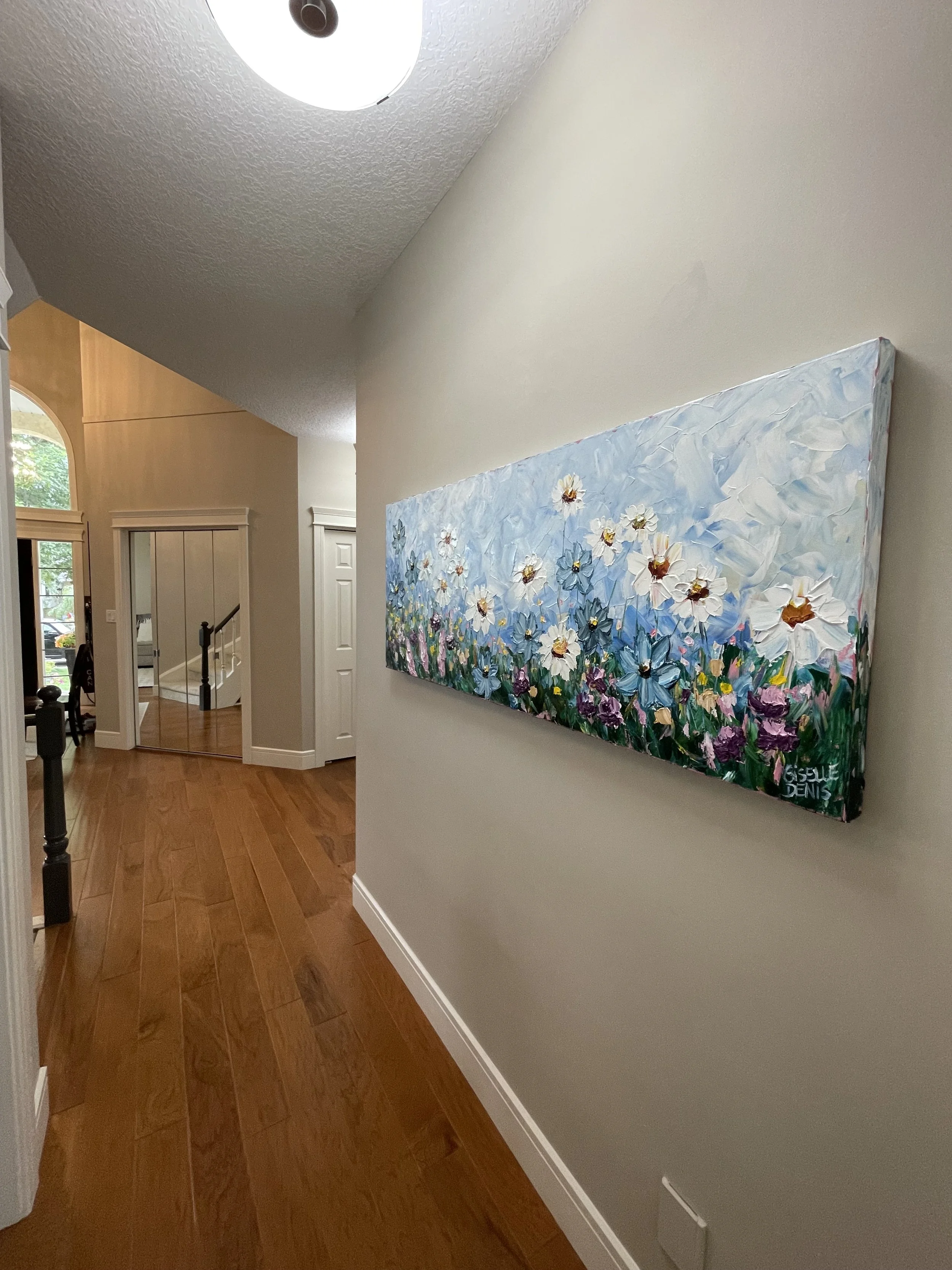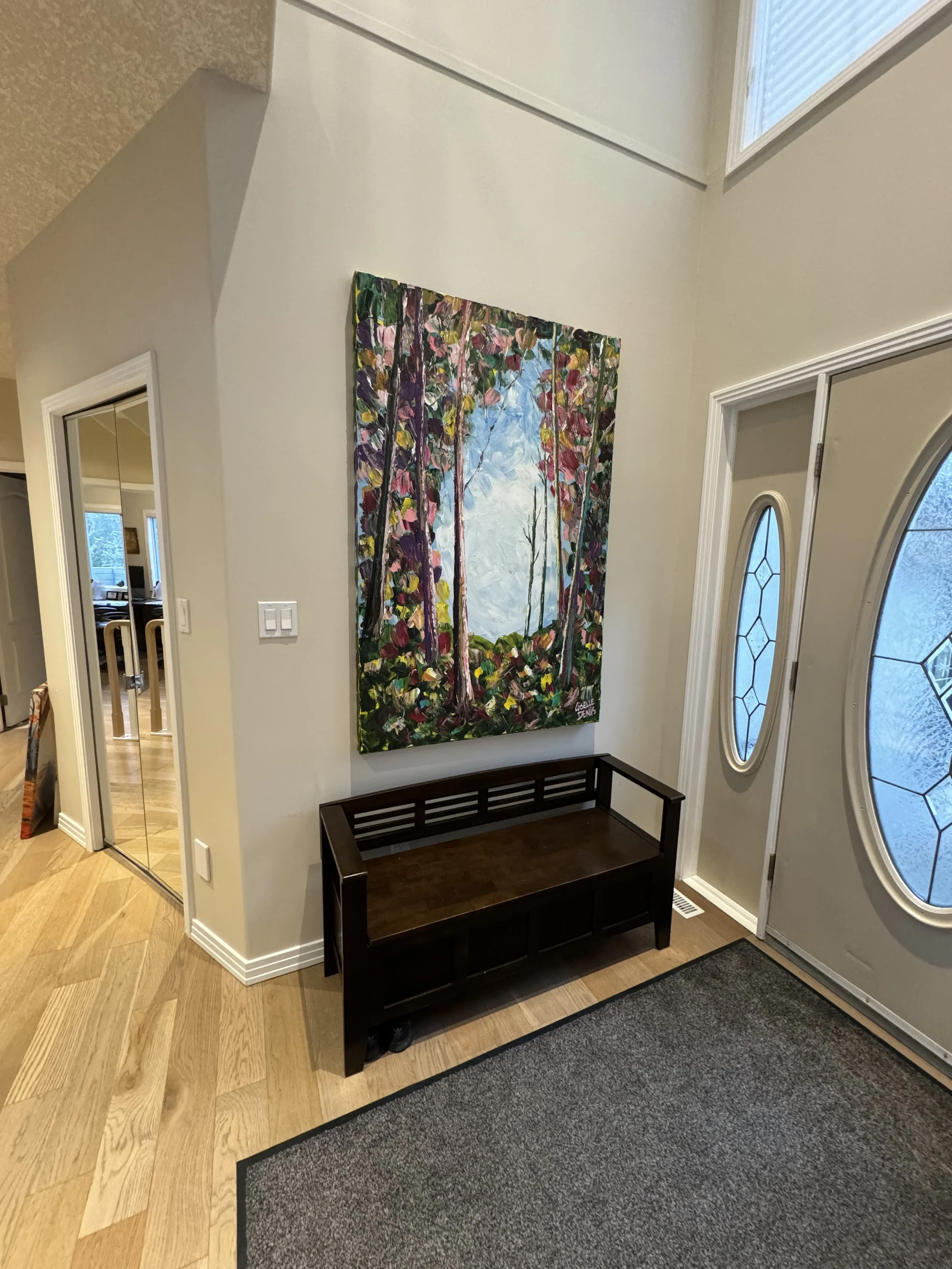 These are examples of Giselle’s in different spaces to help guide you when you are considering art for your space. If you are curious as to what shape a size should go into your space, consider these as good examples to help you in the art selection process. You can also send Giselle photos of your space and she can help with sizing and placement of art for your space. Whether you are looking for art for your home, office or place of business, Giselle is here to help.