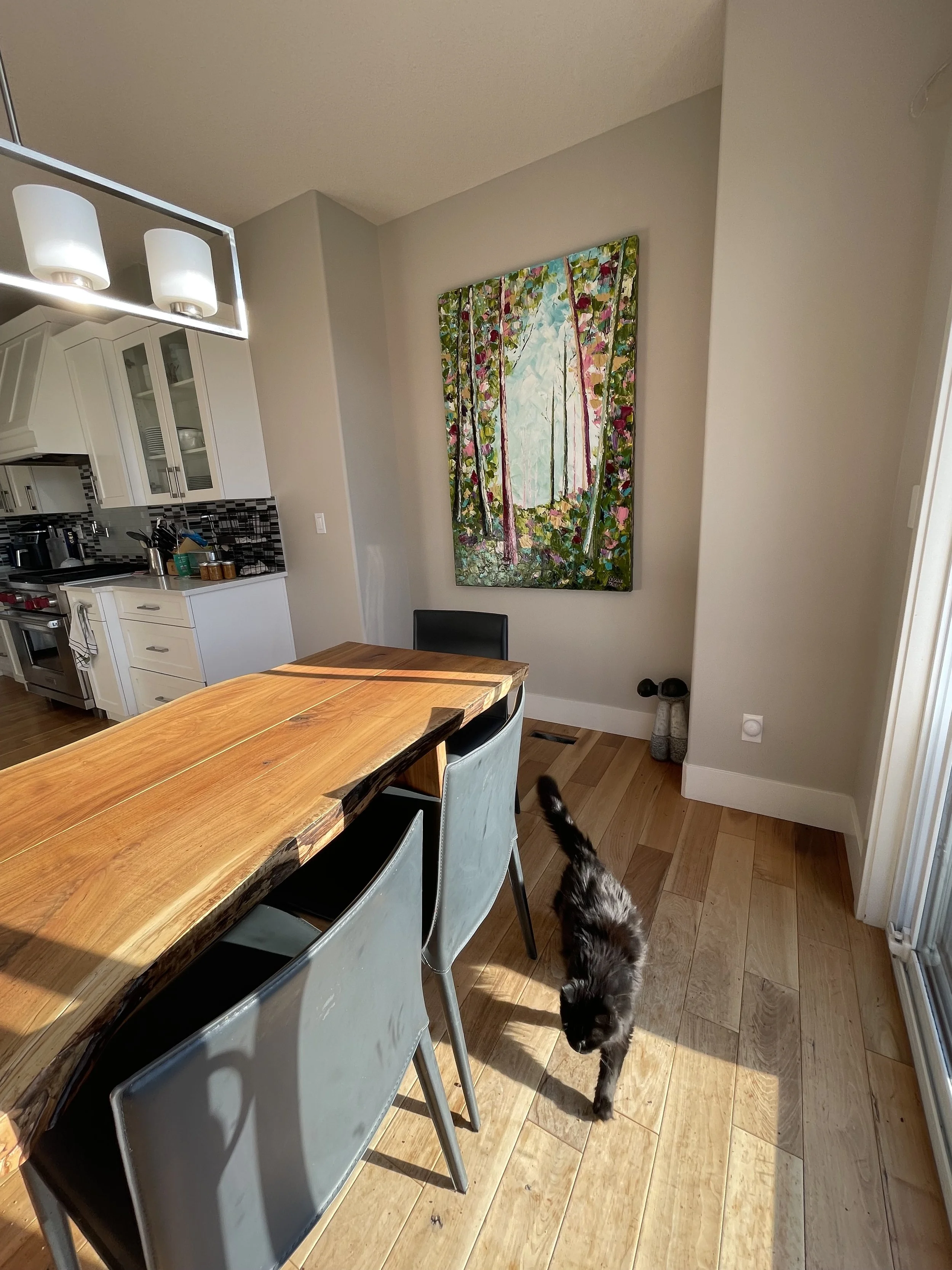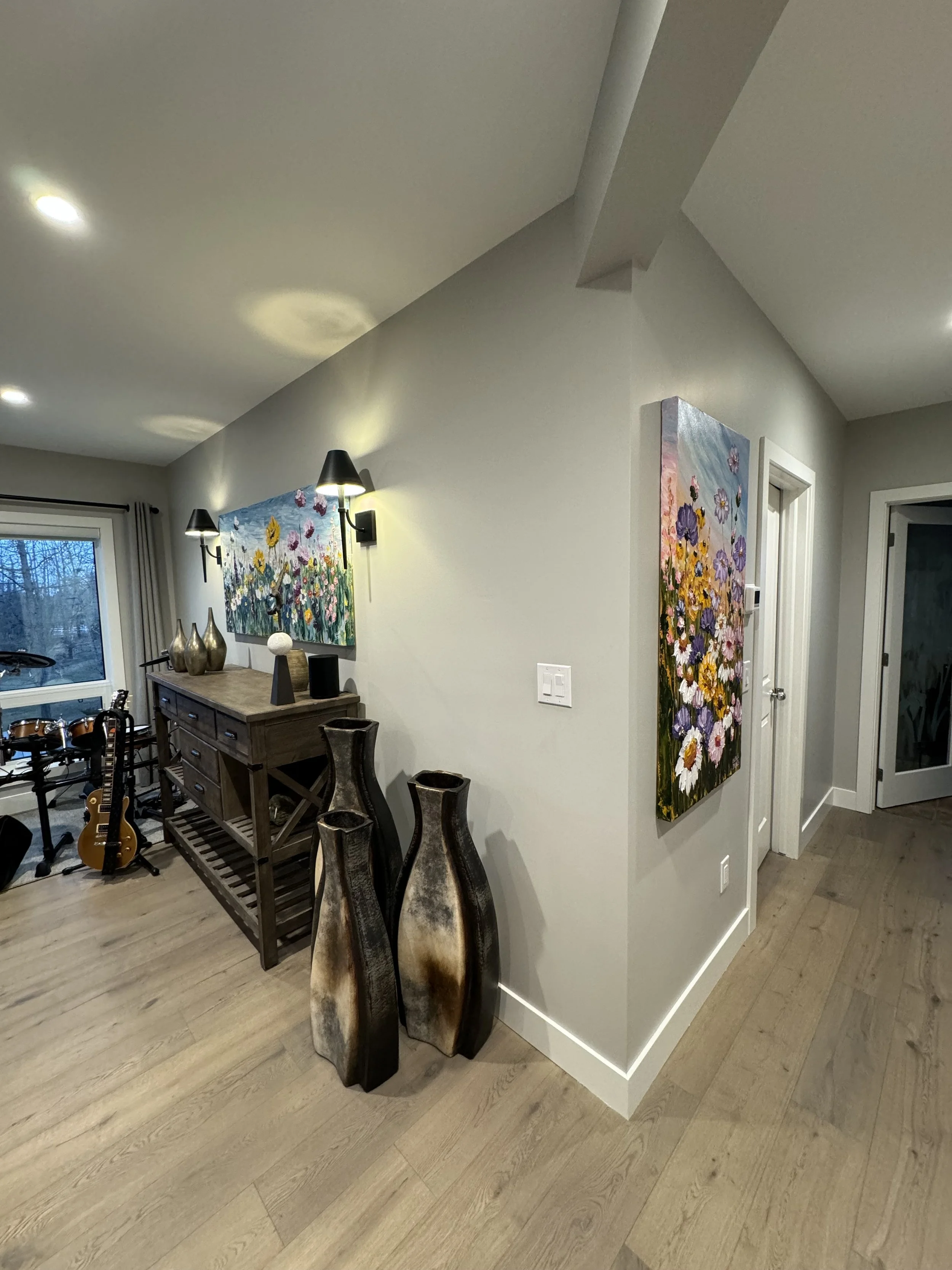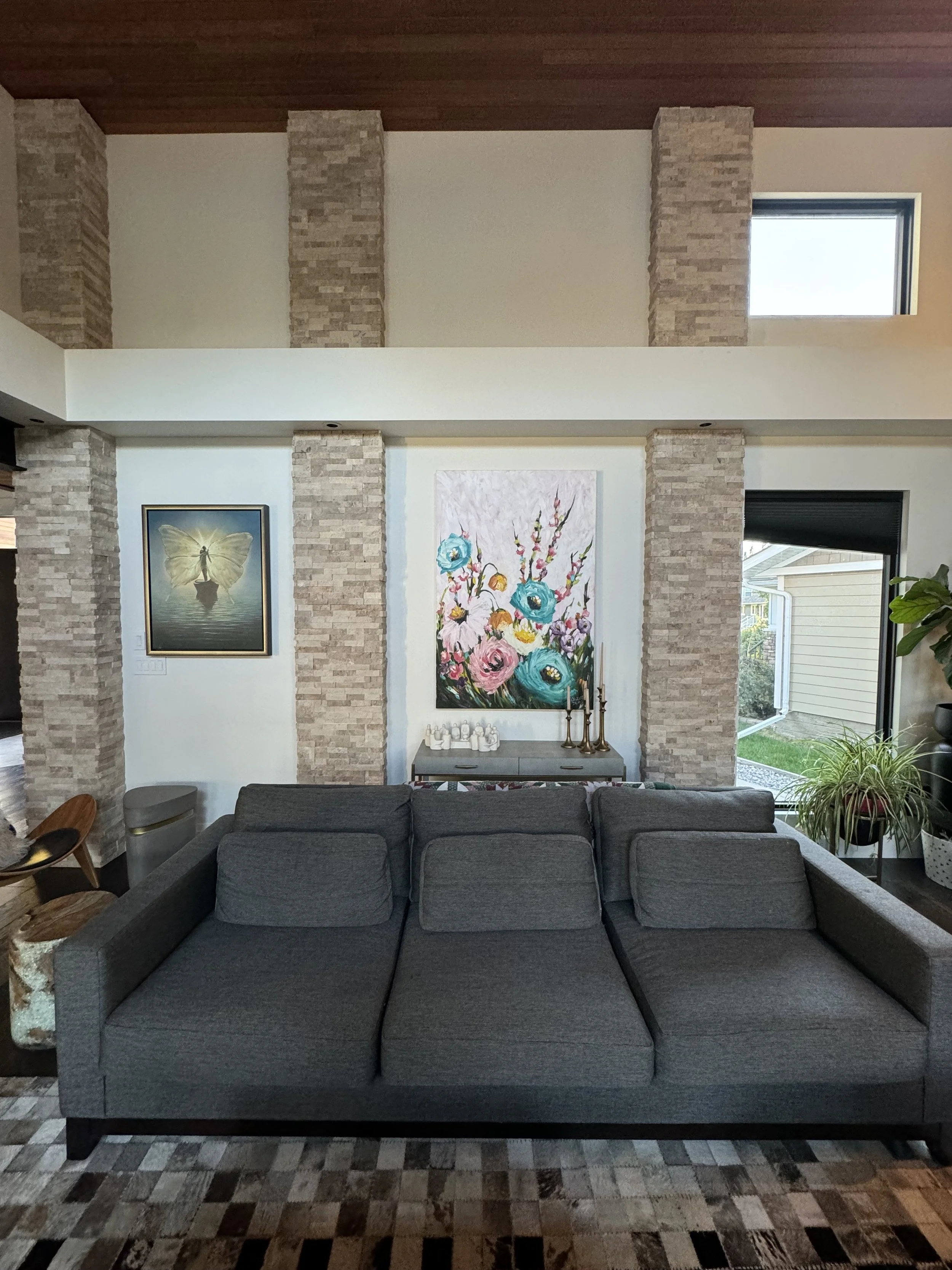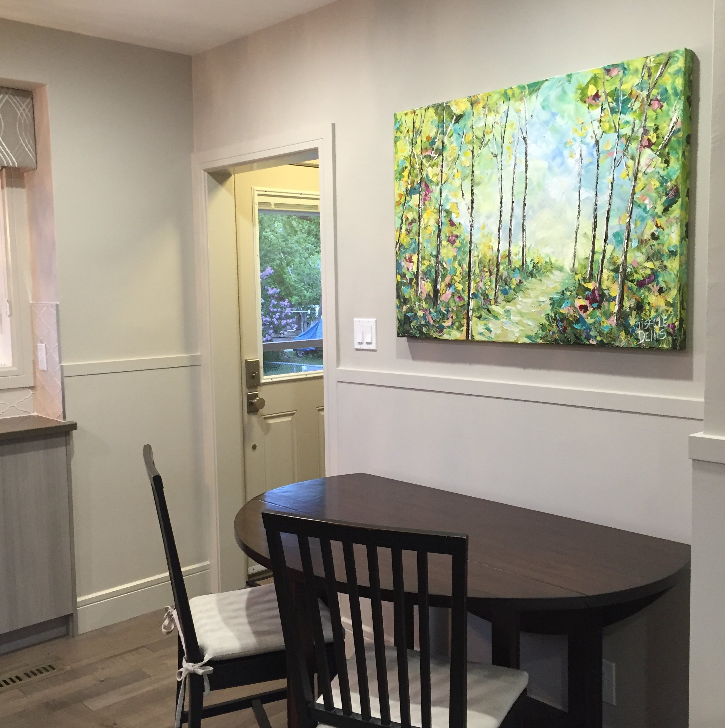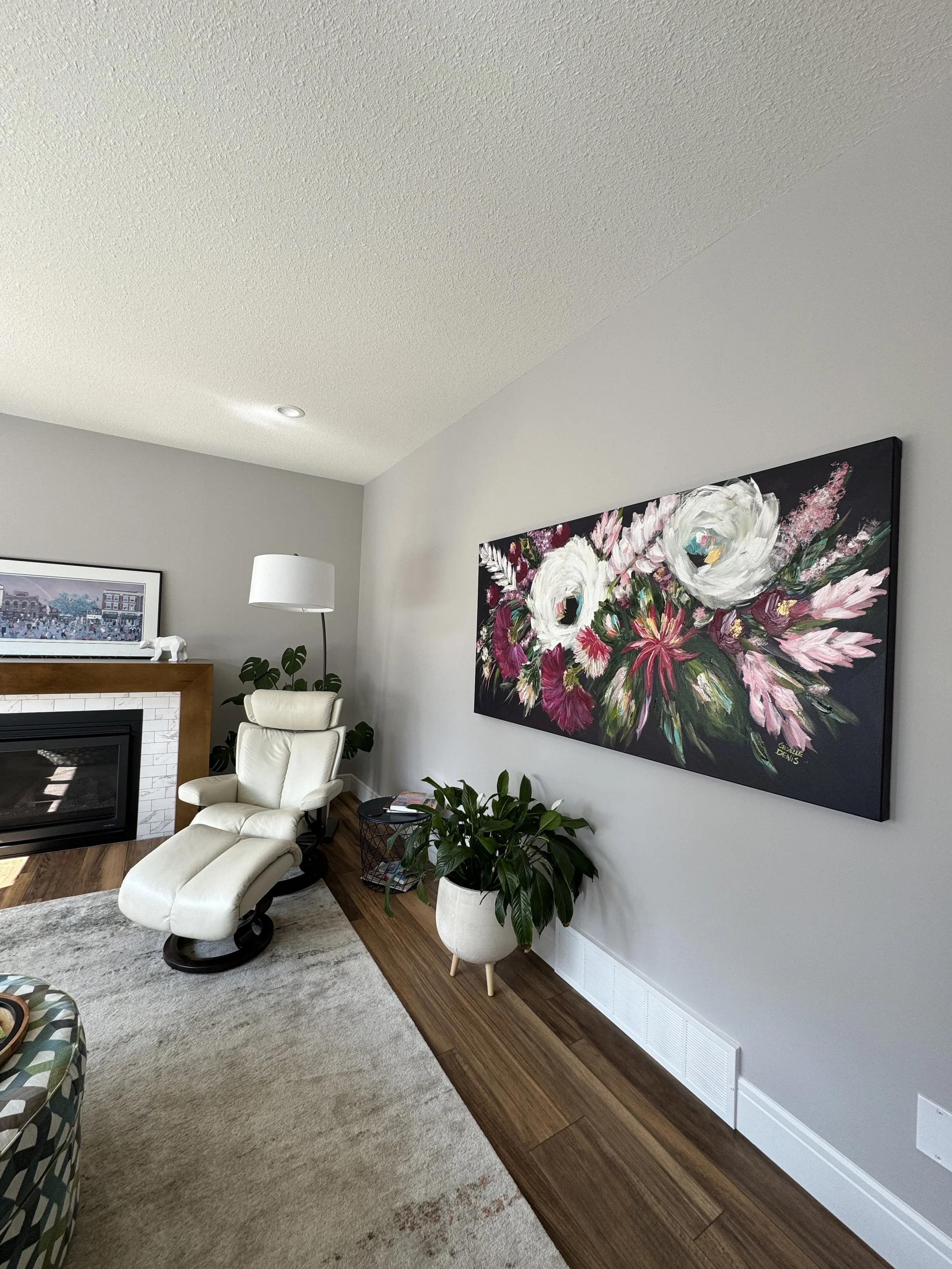 These are examples of Giselle’s in different spaces to help guide you when you are considering art for your space. If you are curious as to what shape a size should go into your space, consider these as good examples to help you in the art selection process. You can also send Giselle photos of your space and she can help with sizing and placement of art for your space. Whether you are looking for art for your home, office or place of business, Giselle is here to help.