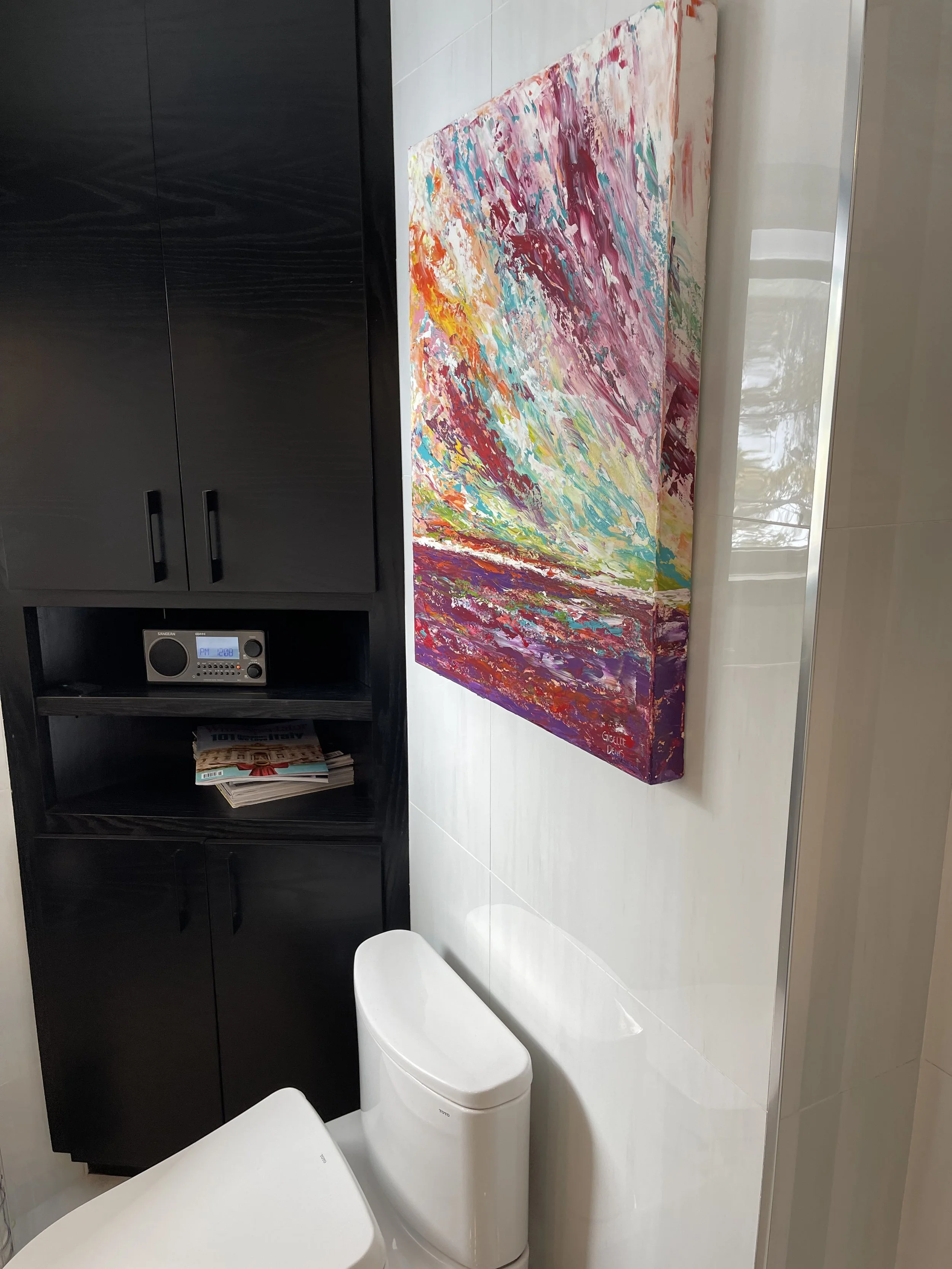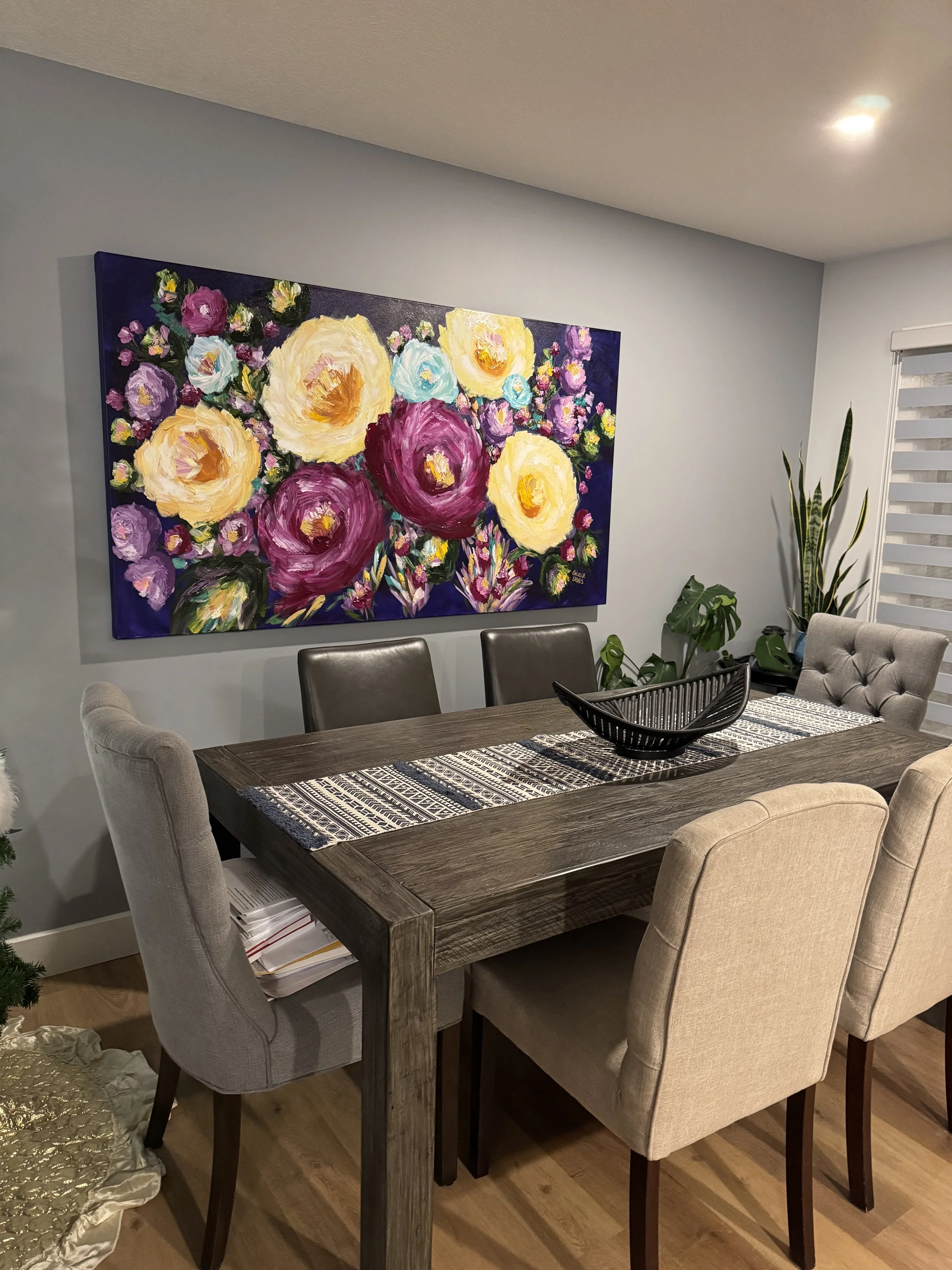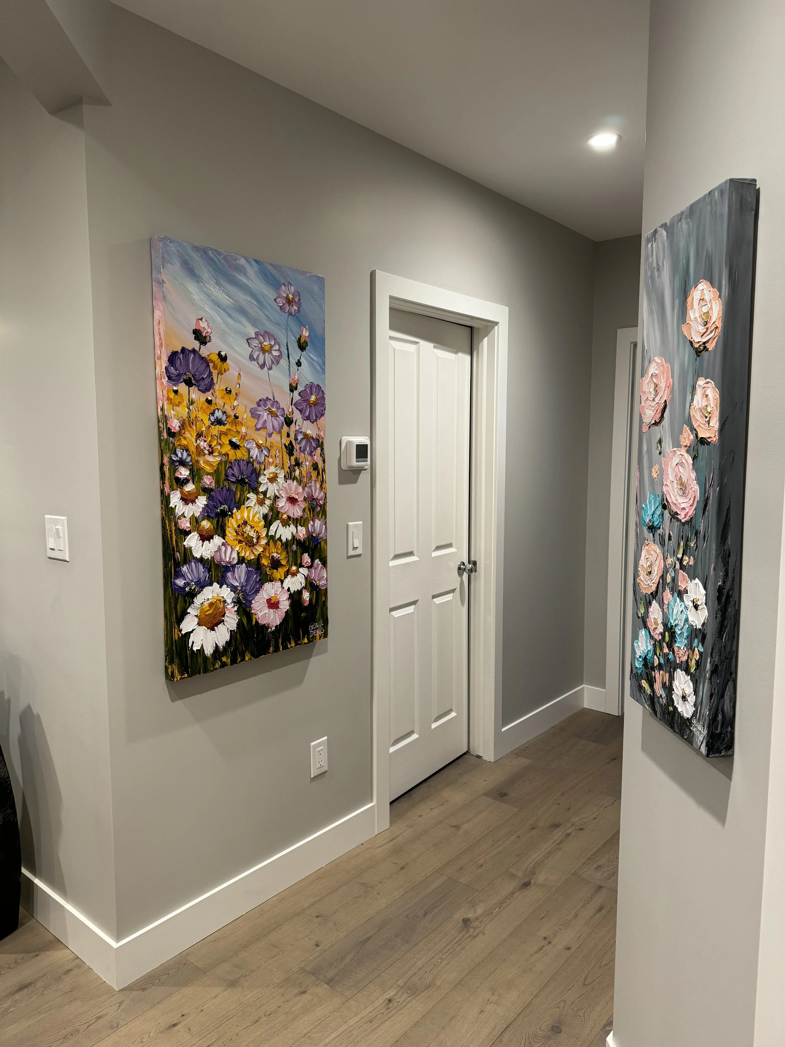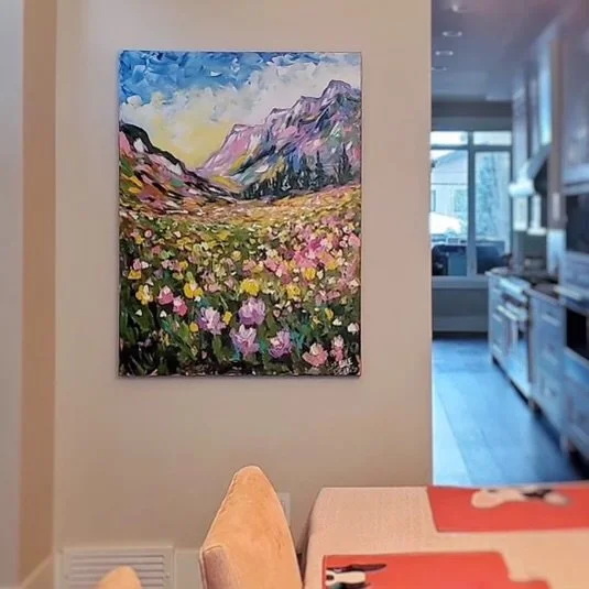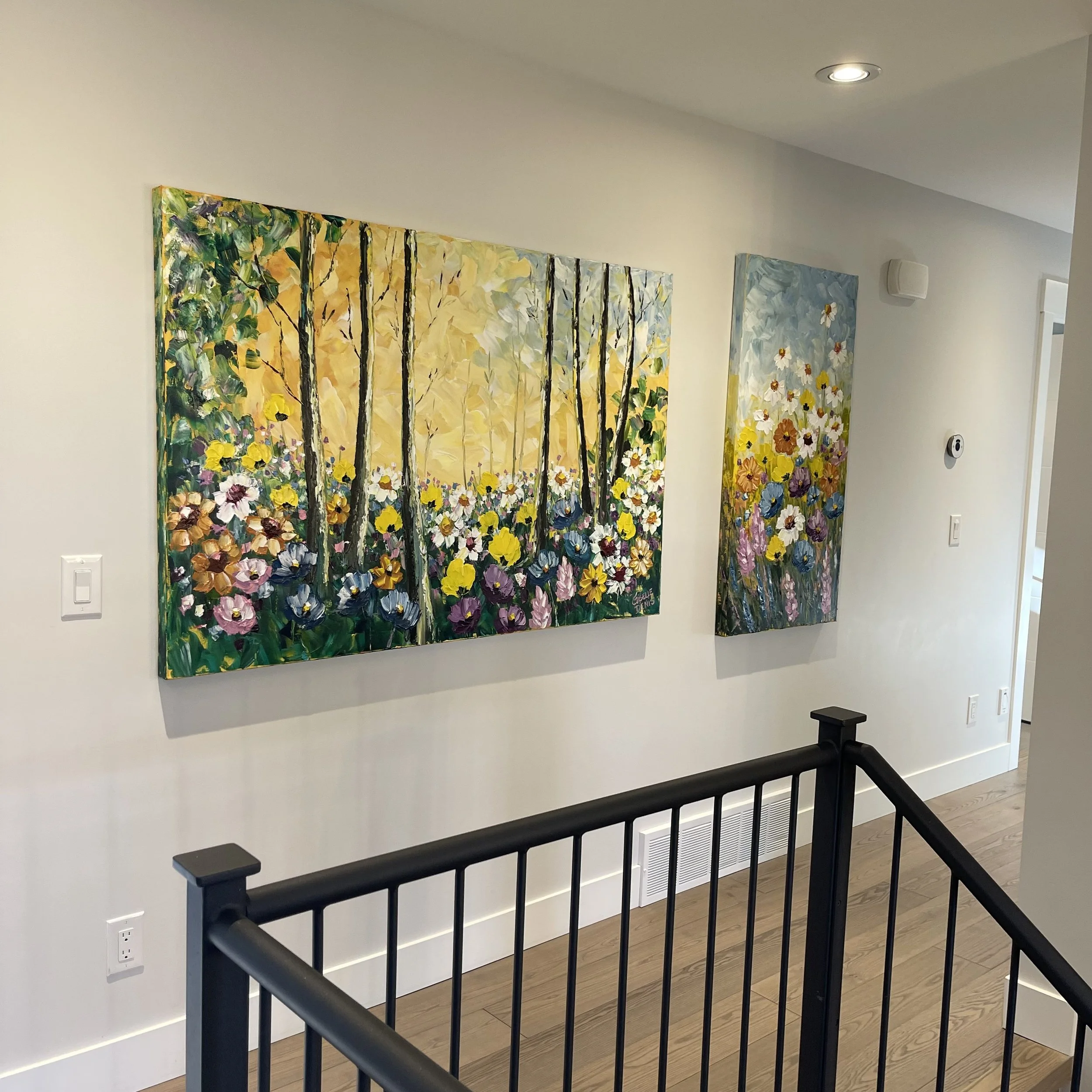 These are examples of Giselle’s in different spaces to help guide you when you are considering art for your space. If you are curious as to what shape a size should go into your space, consider these as good examples to help you in the art selection process. You can also send Giselle photos of your space and she can help with sizing and placement of art for your space. Whether you are looking for art for your home, office or place of business, Giselle is here to help.