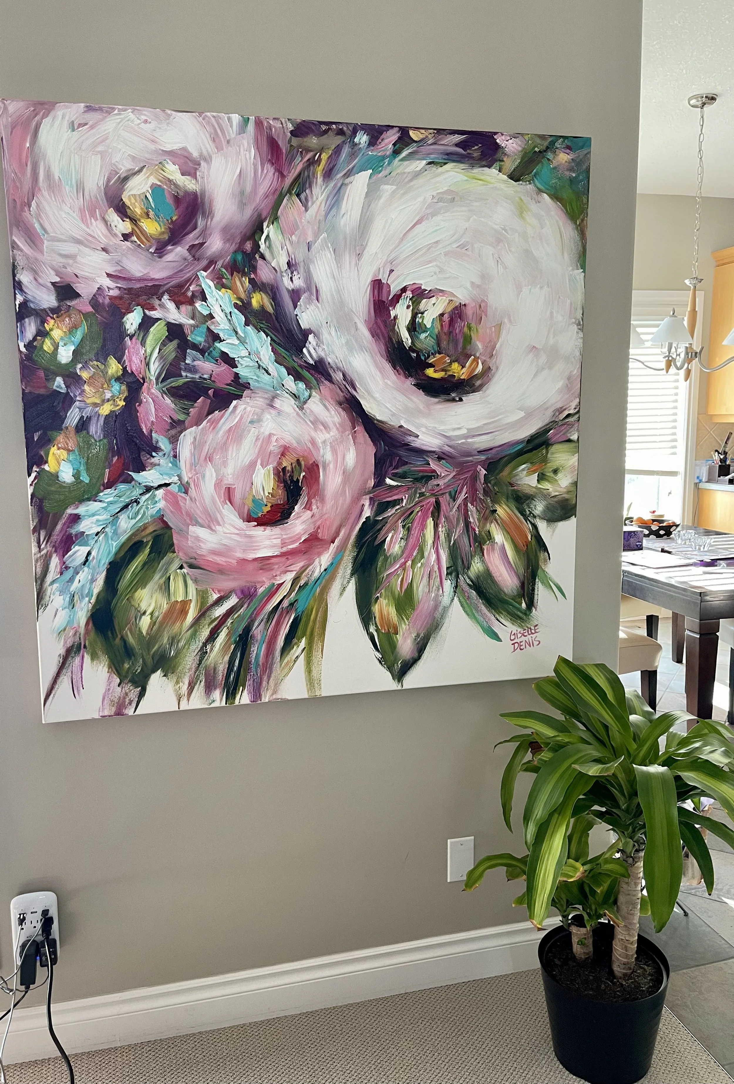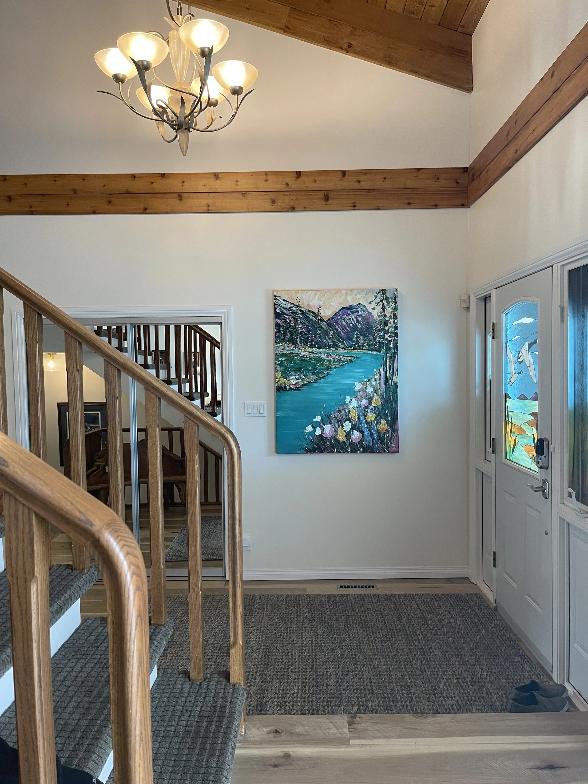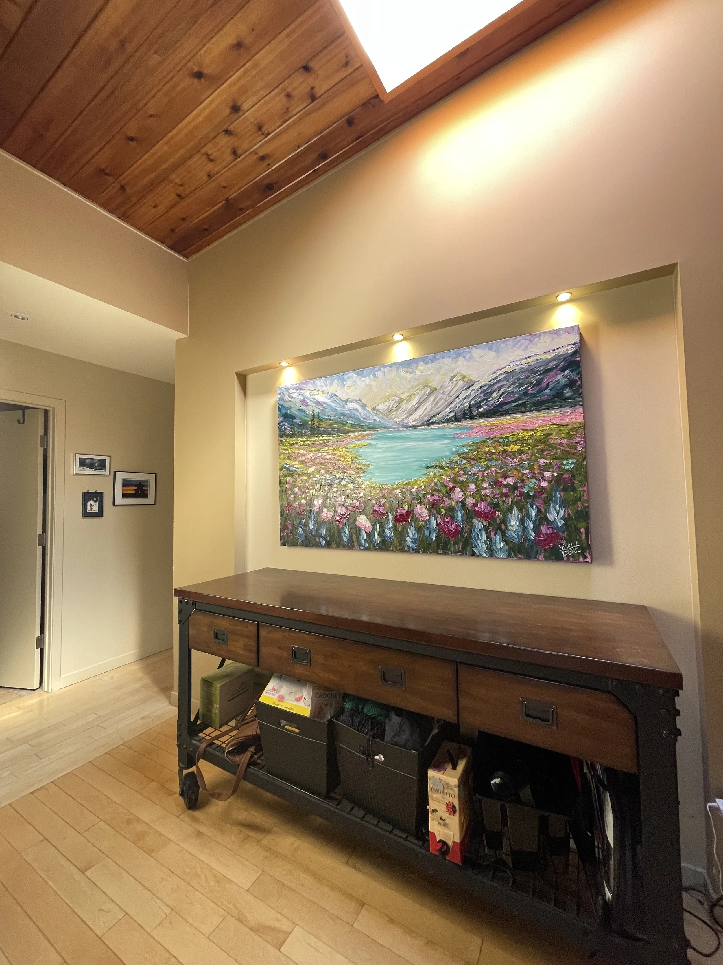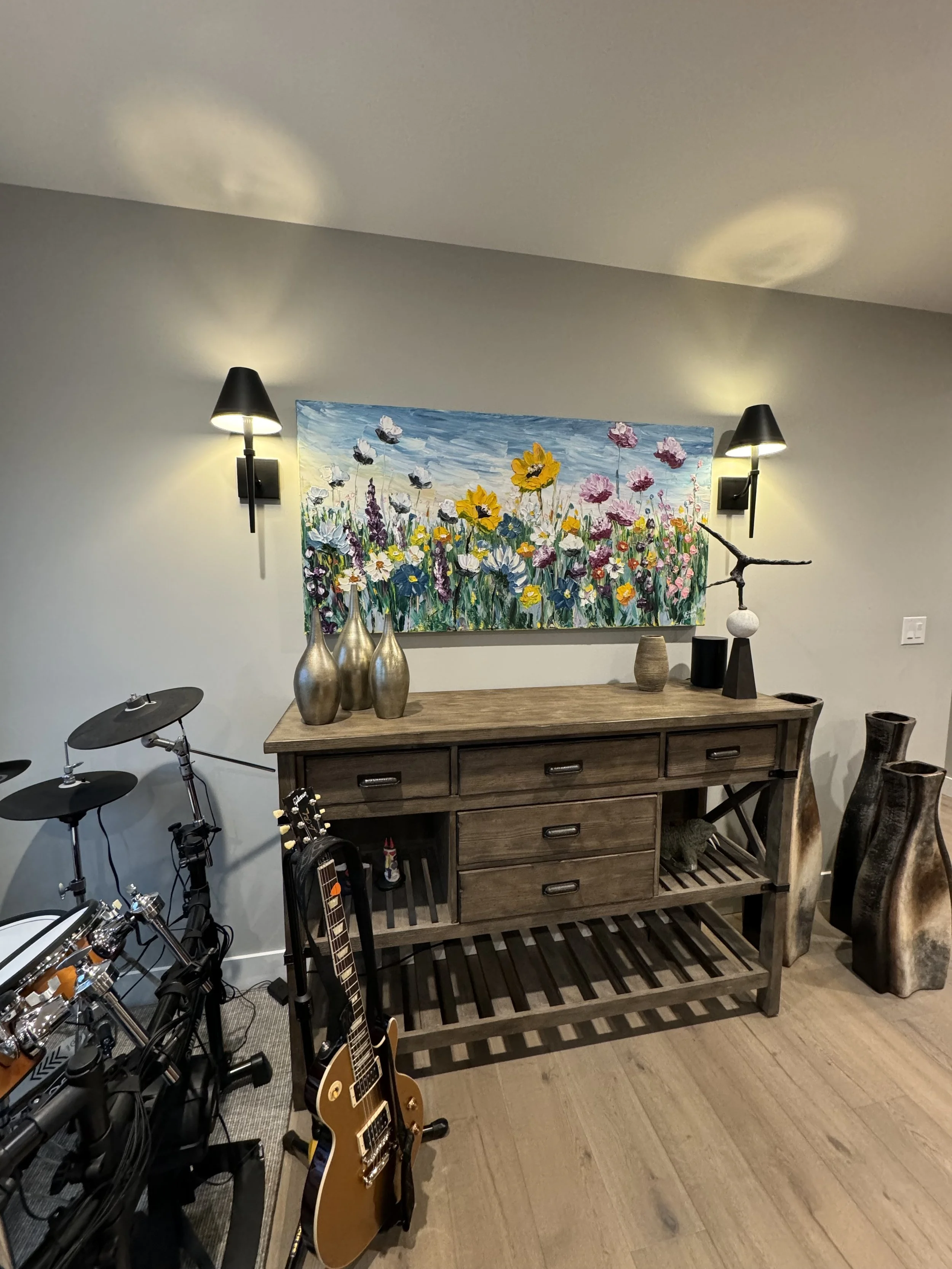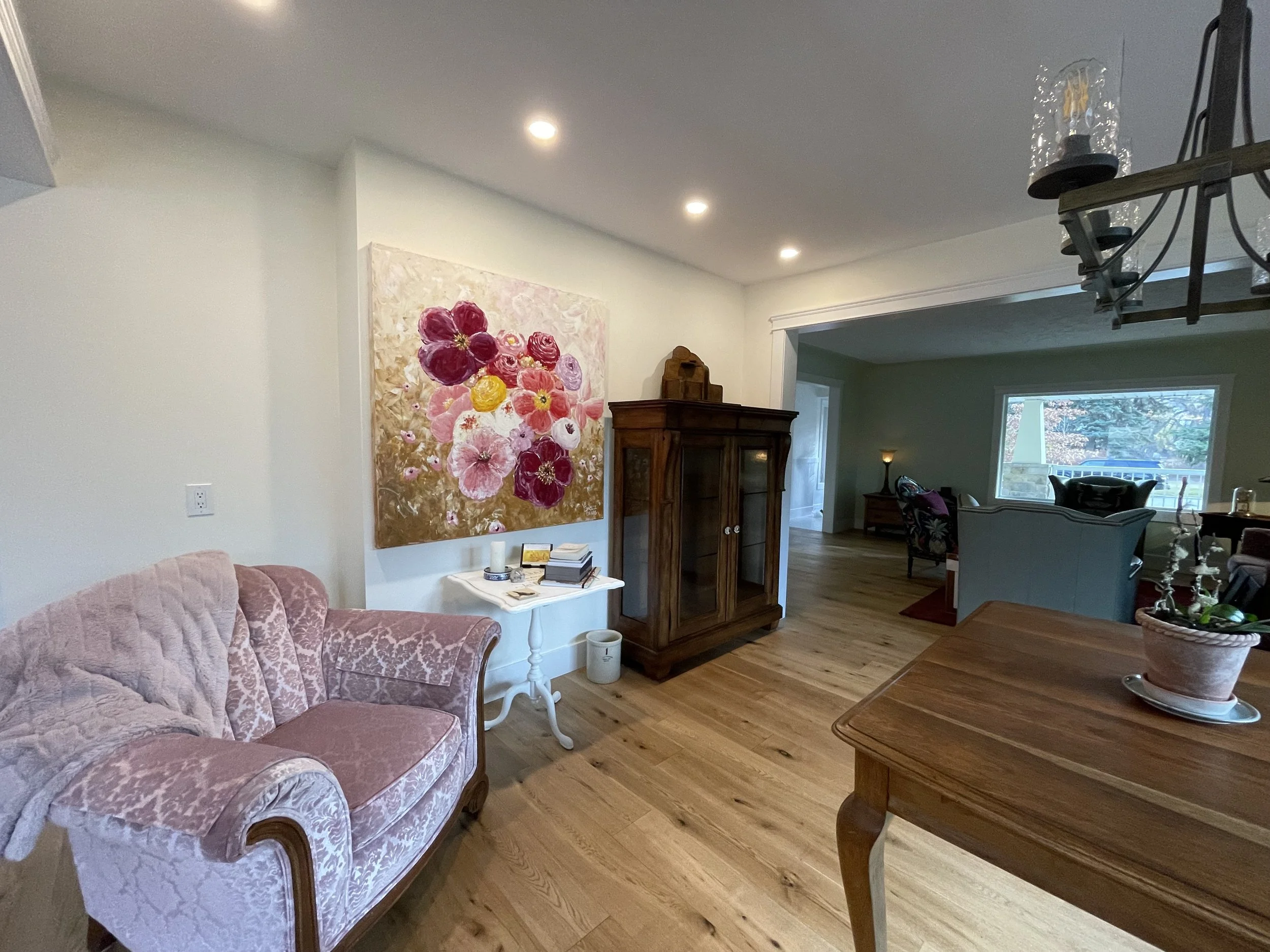 These are examples of Giselle’s in different spaces to help guide you when you are considering art for your space. If you are curious as to what shape a size should go into your space, consider these as good examples to help you in the art selection process. You can also send Giselle photos of your space and she can help with sizing and placement of art for your space. Whether you are looking for art for your home, office or place of business, Giselle is here to help.