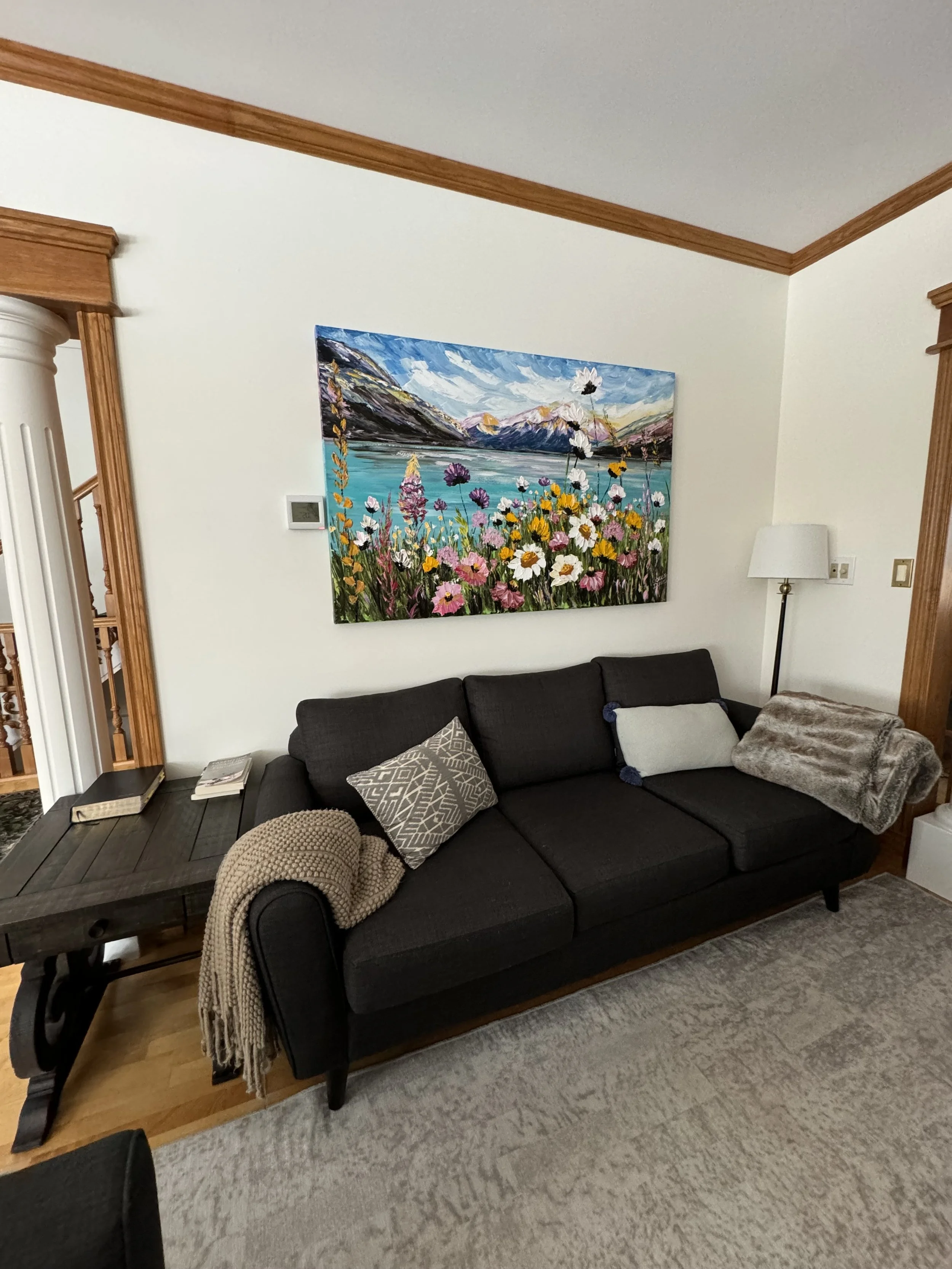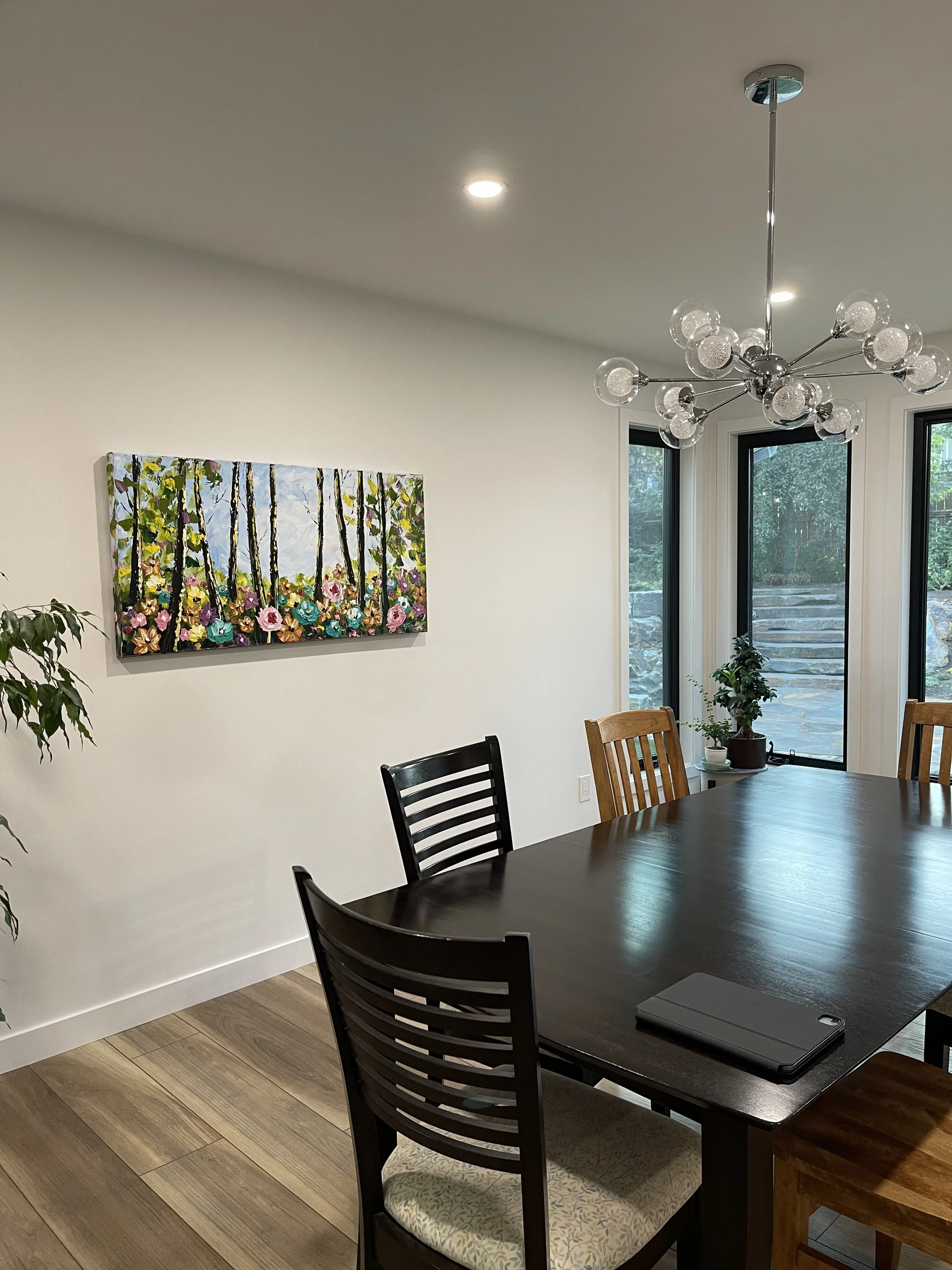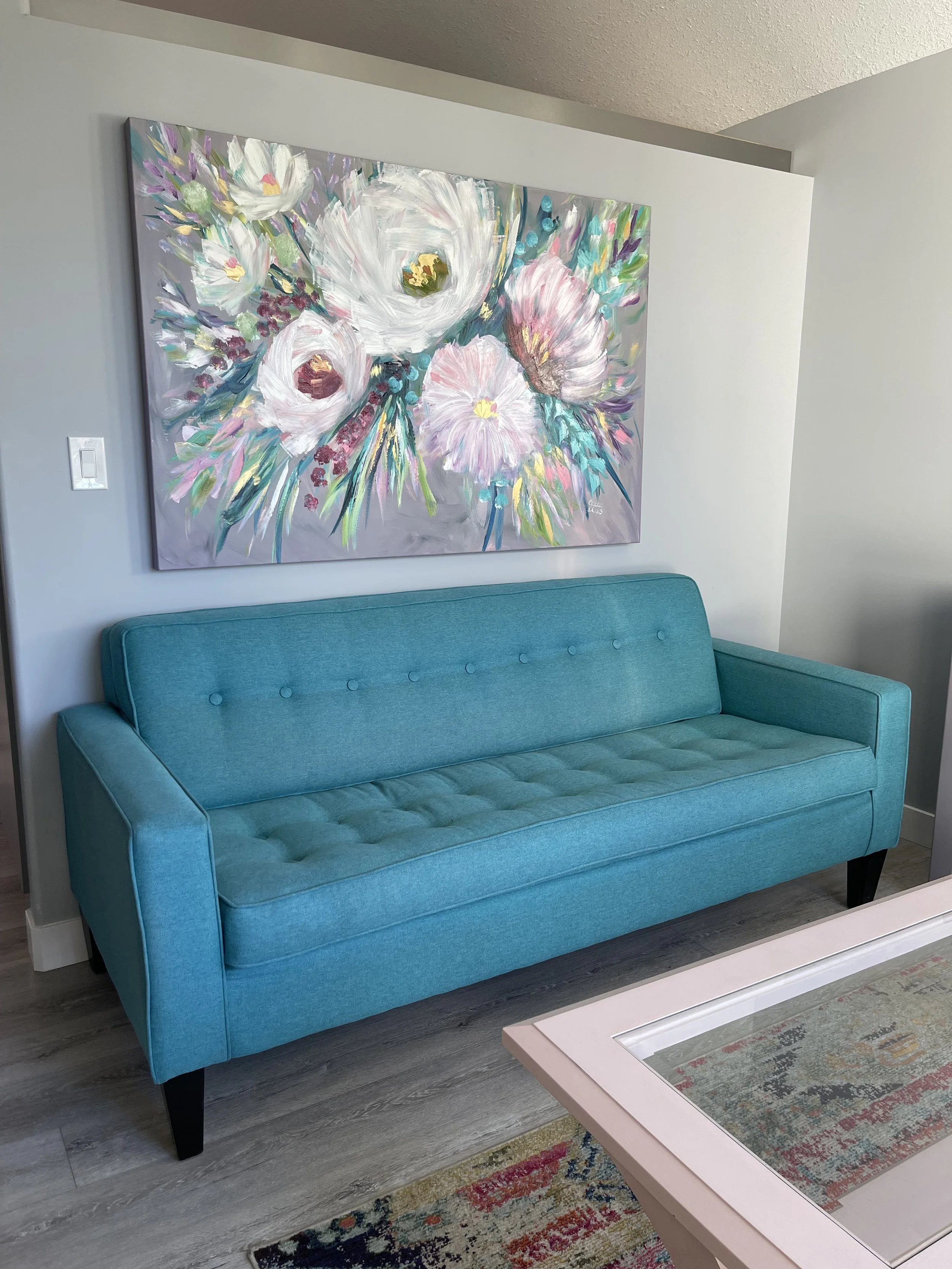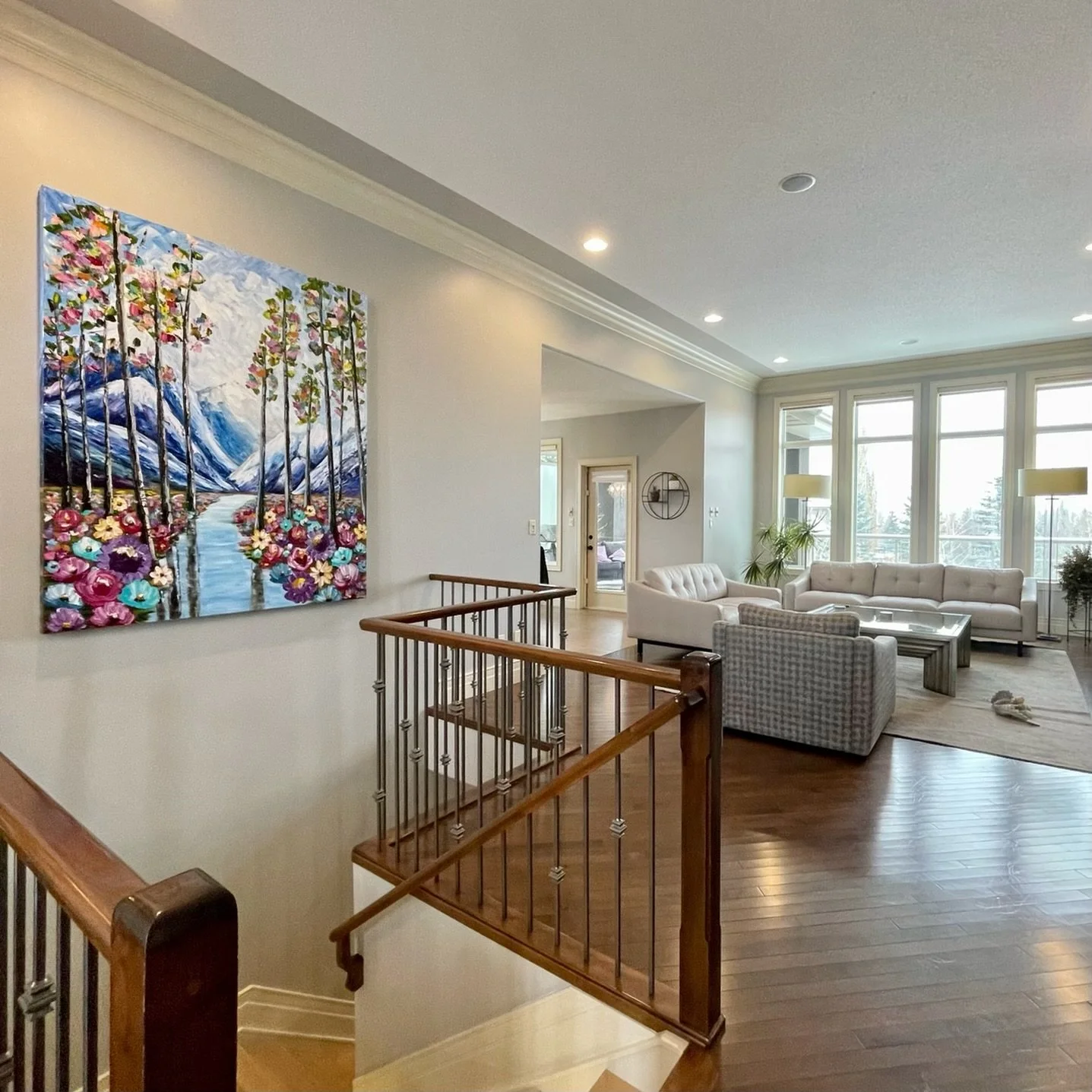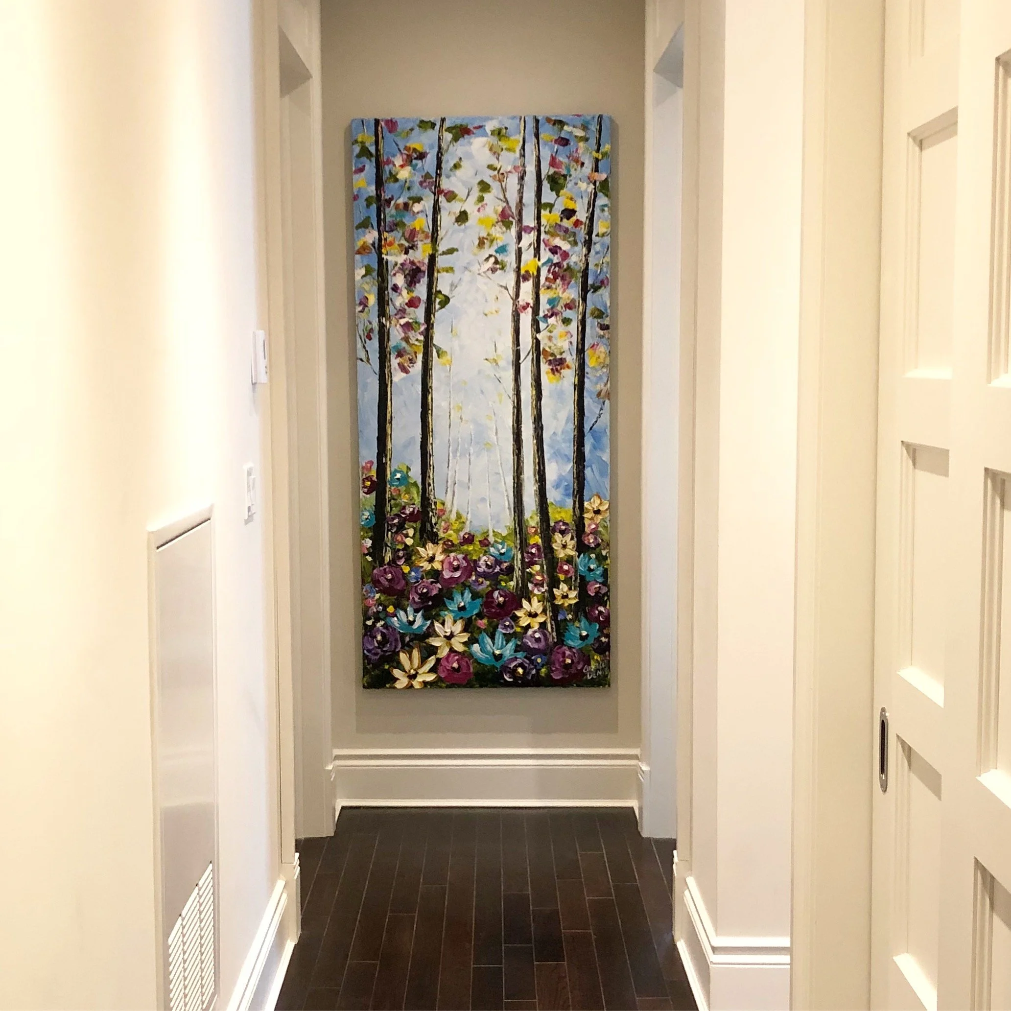 These are examples of Giselle’s in different spaces to help guide you when you are considering art for your space. If you are curious as to what shape a size should go into your space, consider these as good examples to help you in the art selection process. You can also send Giselle photos of your space and she can help with sizing and placement of art for your space. Whether you are looking for art for your home, office or place of business, Giselle is here to help.