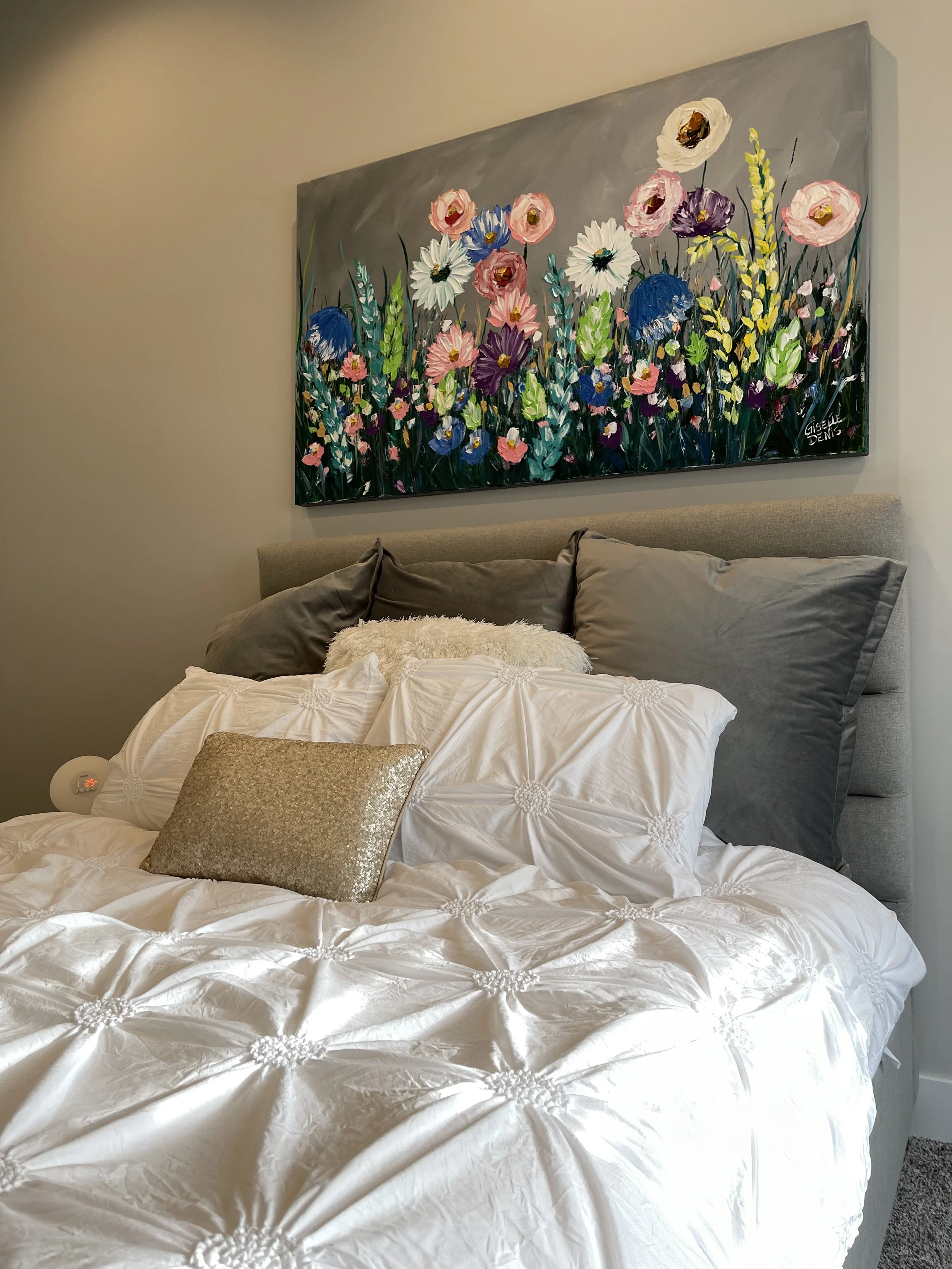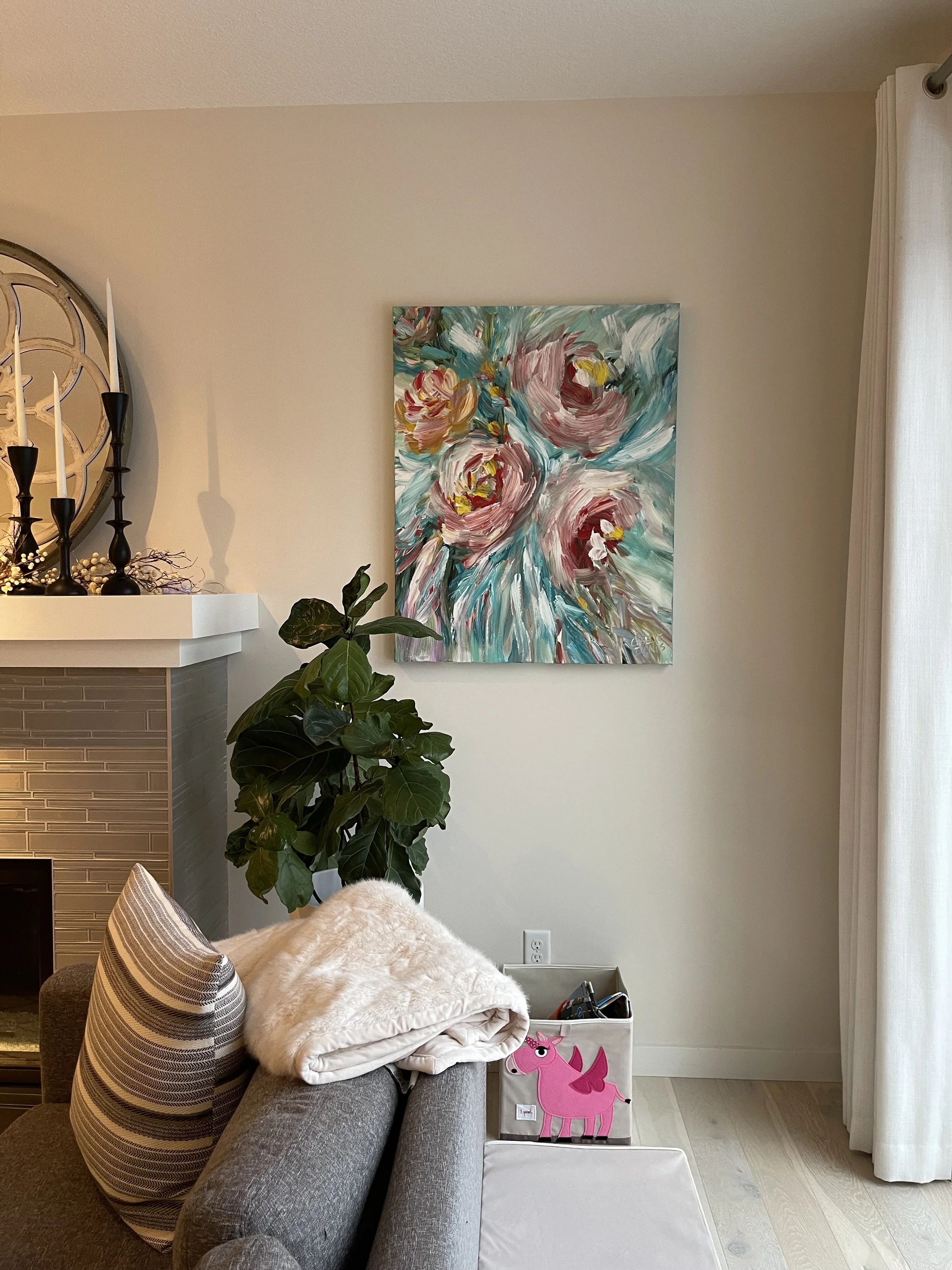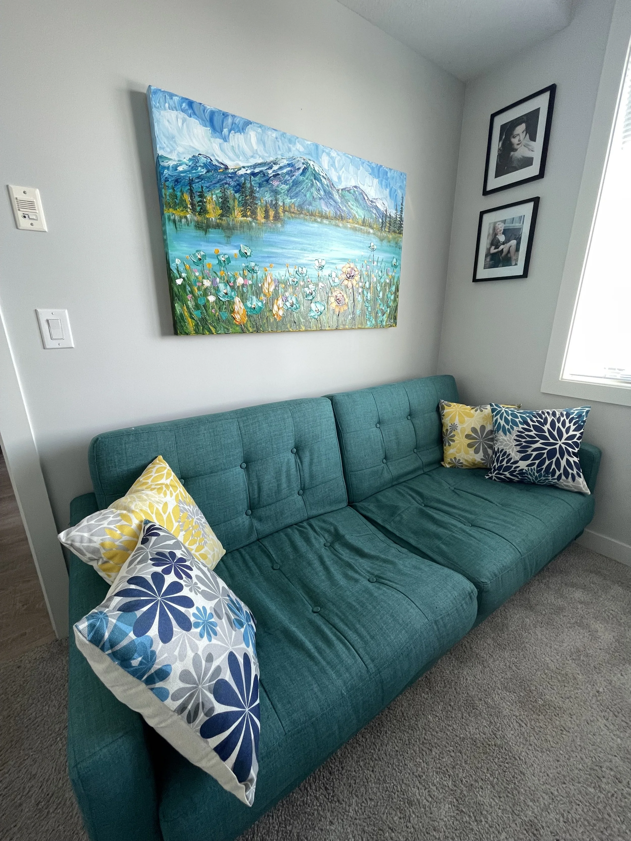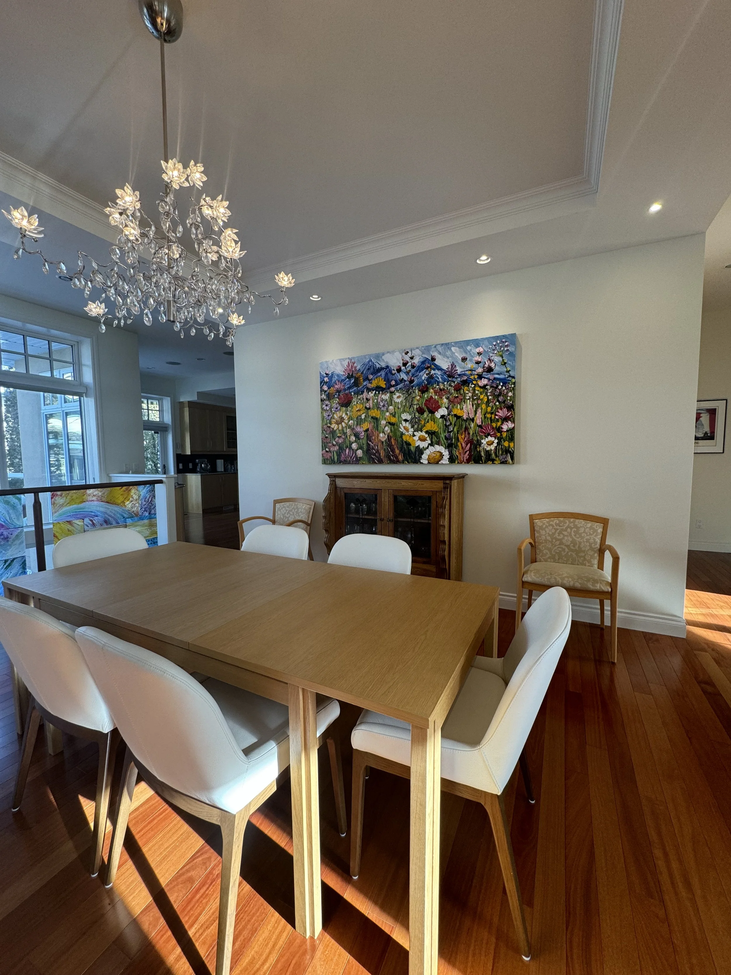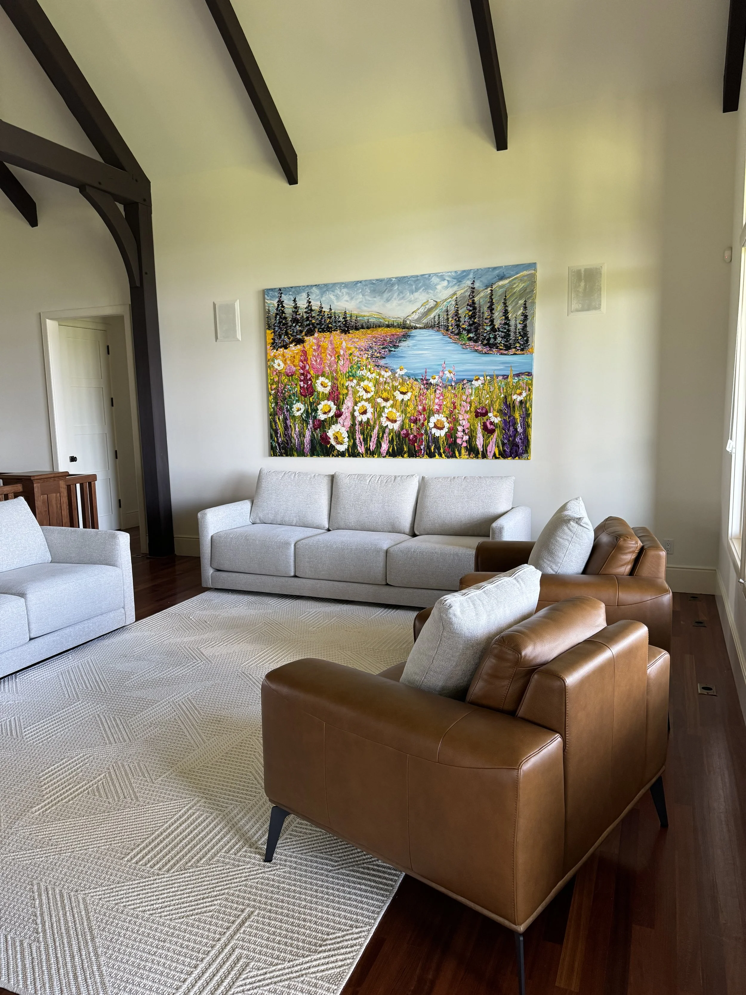 These are examples of Giselle’s in different spaces to help guide you when you are considering art for your space. If you are curious as to what shape a size should go into your space, consider these as good examples to help you in the art selection process. You can also send Giselle photos of your space and she can help with sizing and placement of art for your space. Whether you are looking for art for your home, office or place of business, Giselle is here to help.