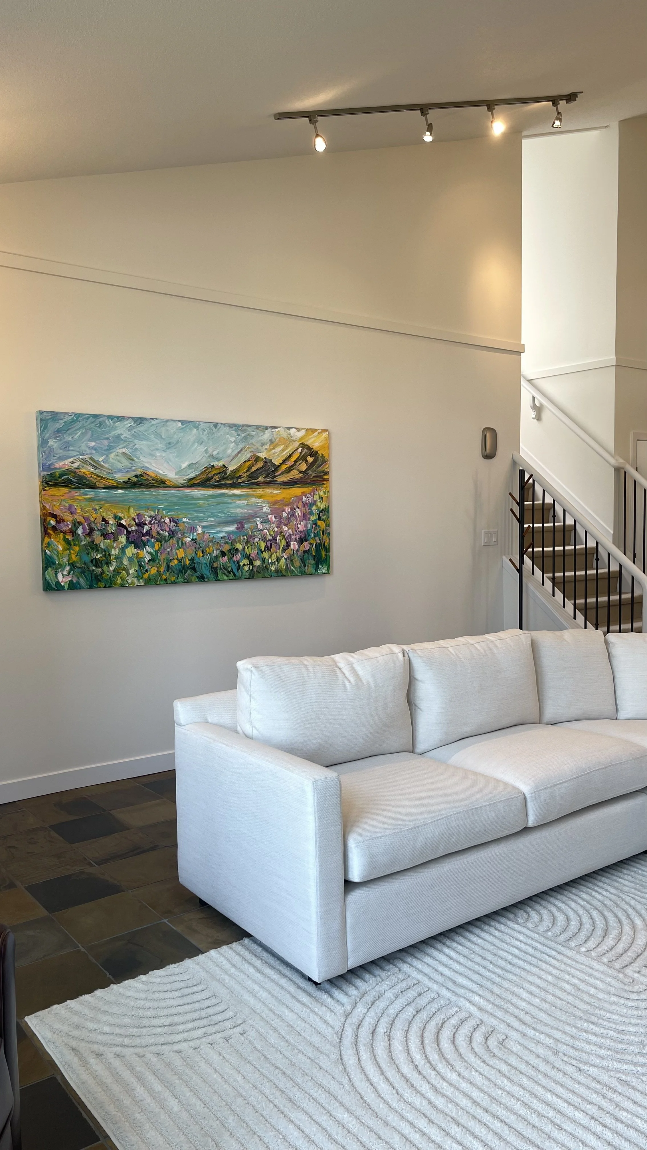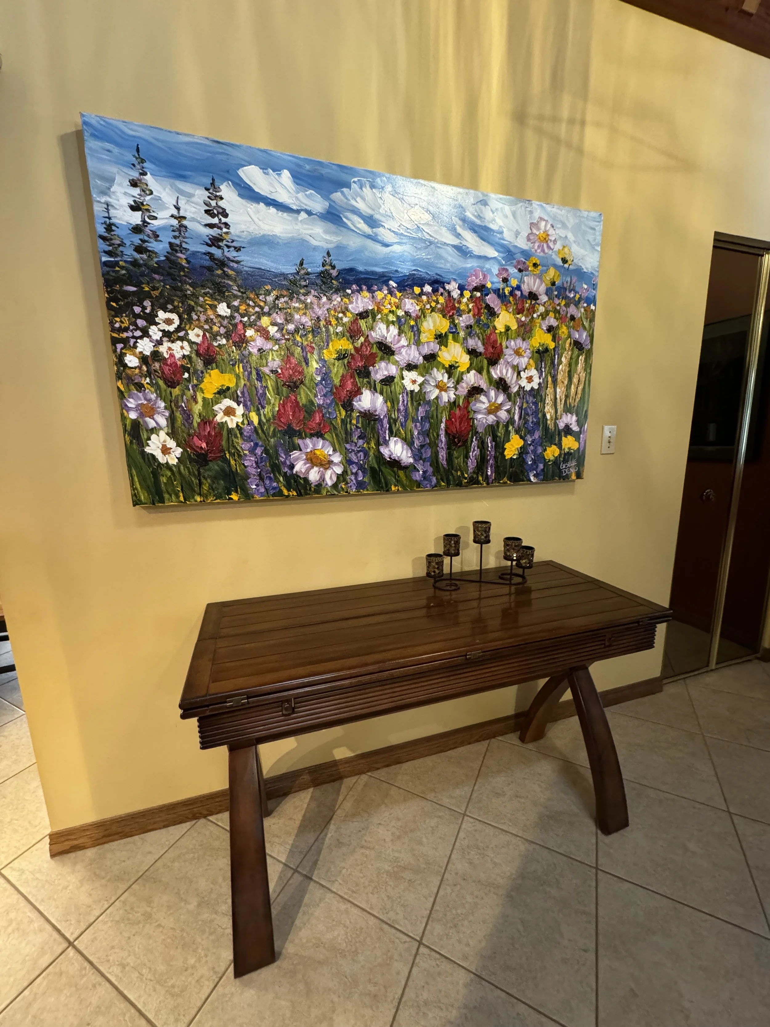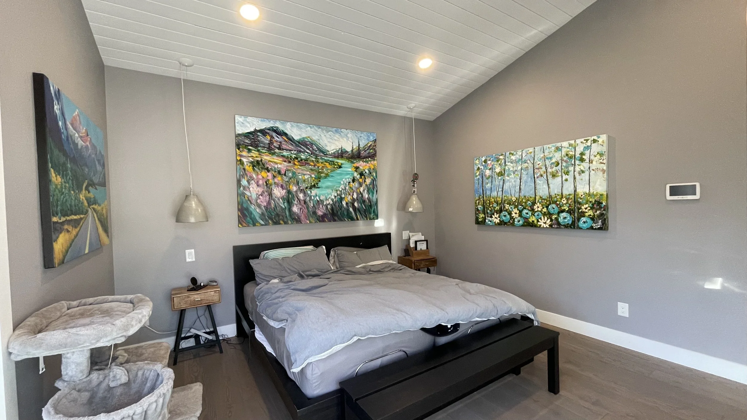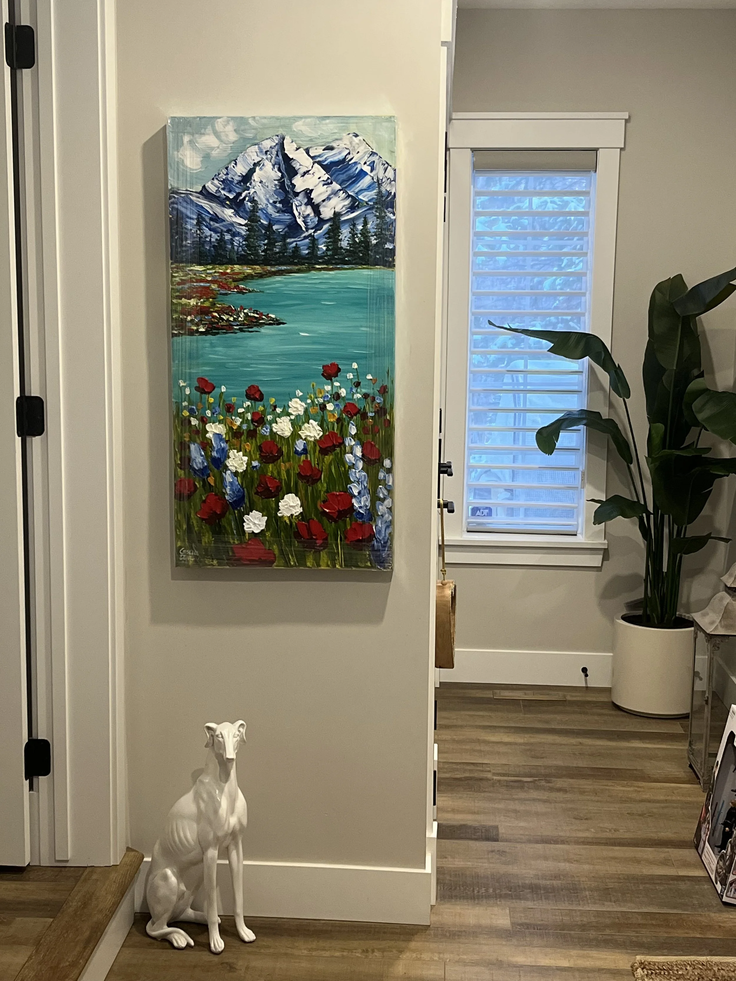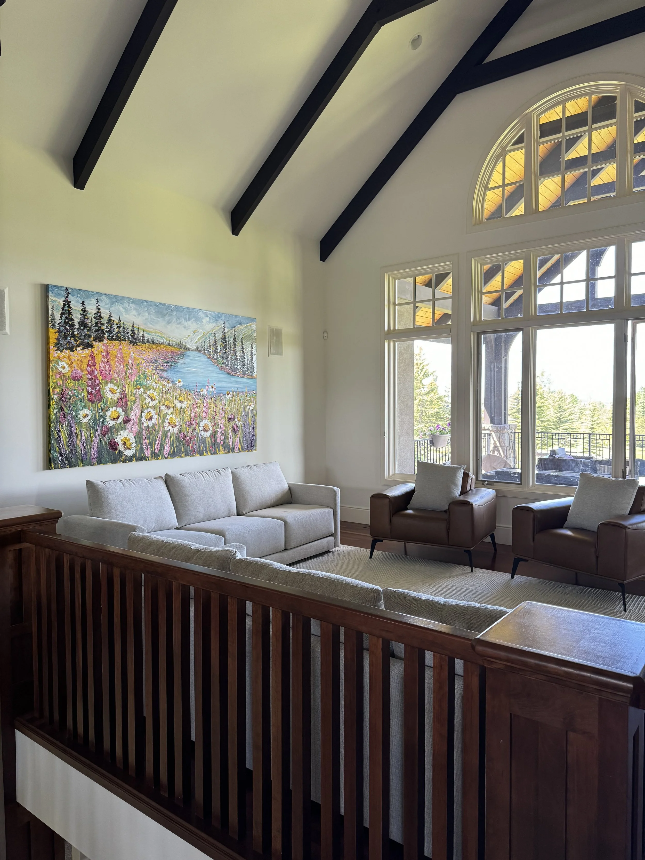 These are examples of Giselle’s in different spaces to help guide you when you are considering art for your space. If you are curious as to what shape a size should go into your space, consider these as good examples to help you in the art selection process. You can also send Giselle photos of your space and she can help with sizing and placement of art for your space. Whether you are looking for art for your home, office or place of business, Giselle is here to help.