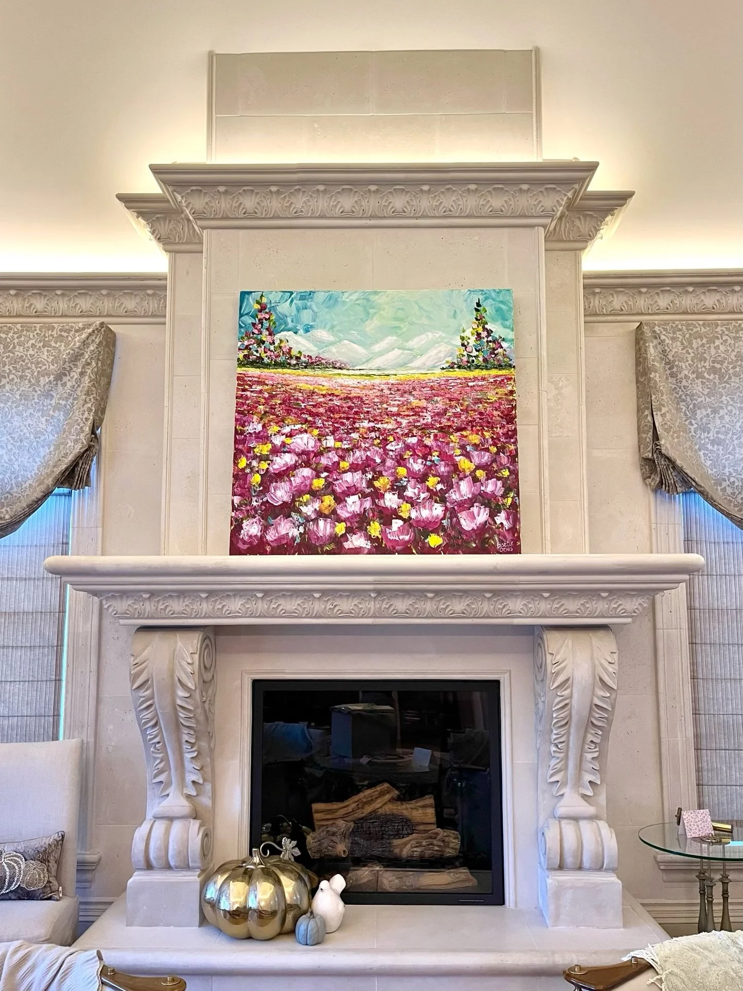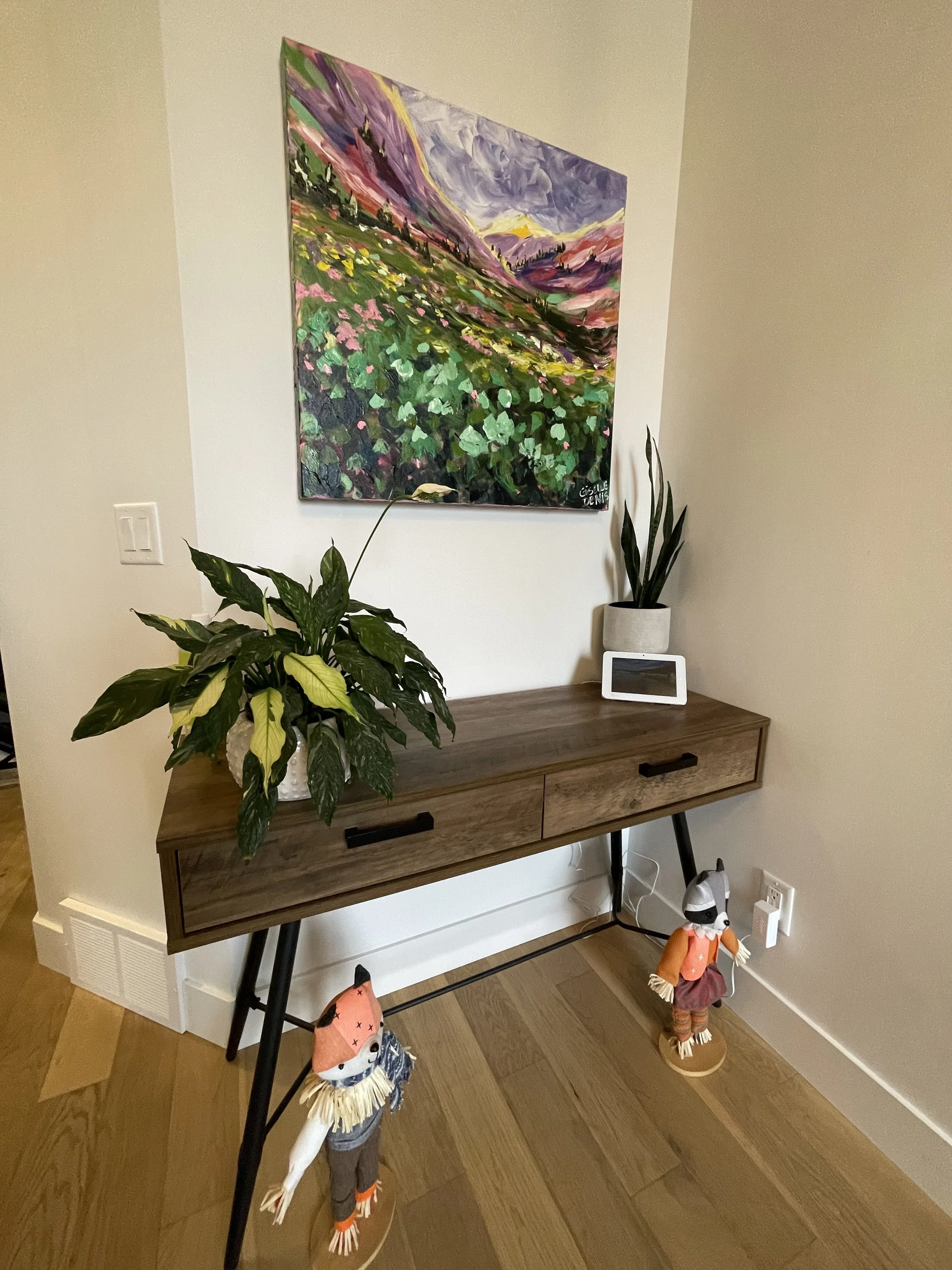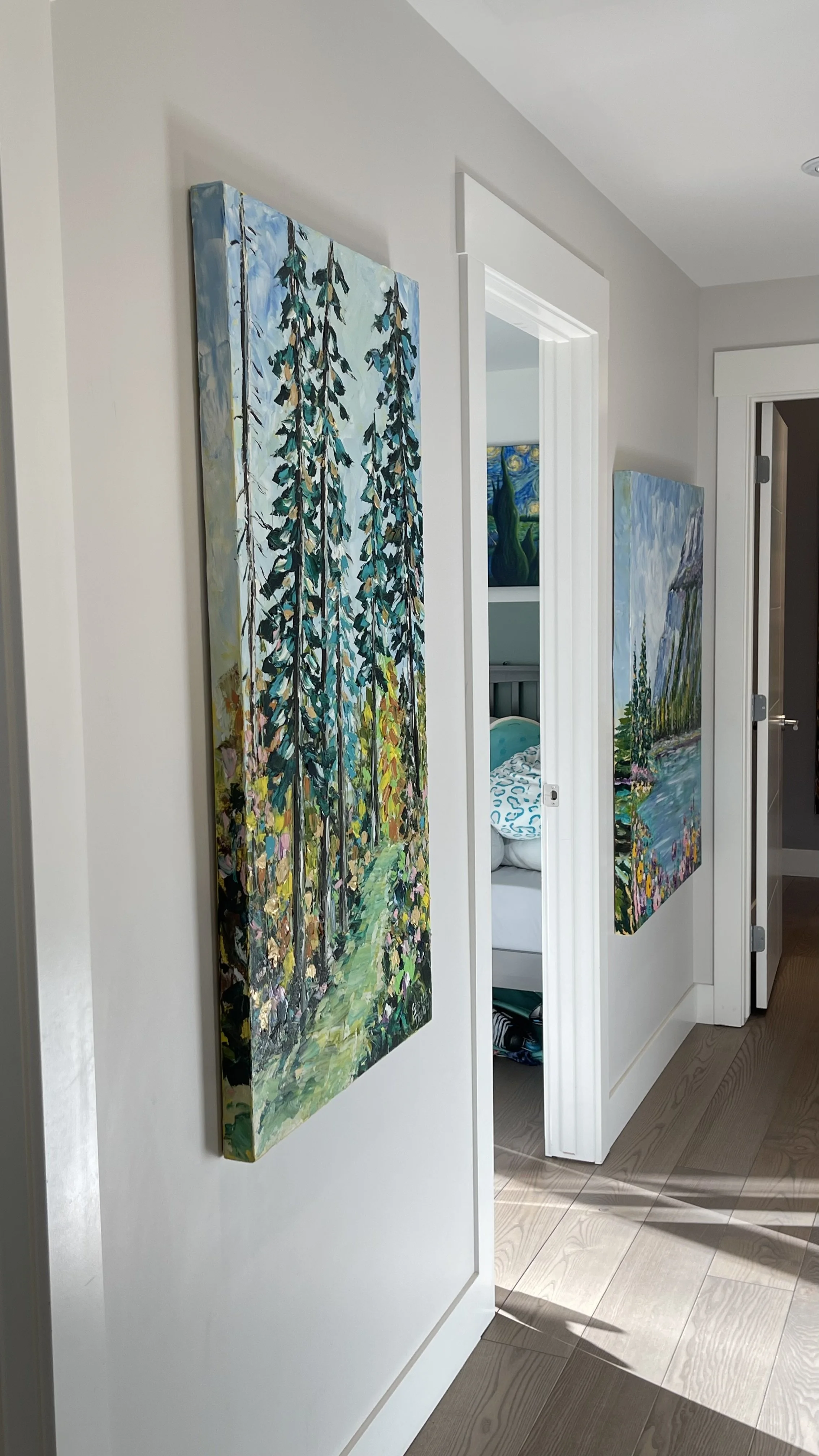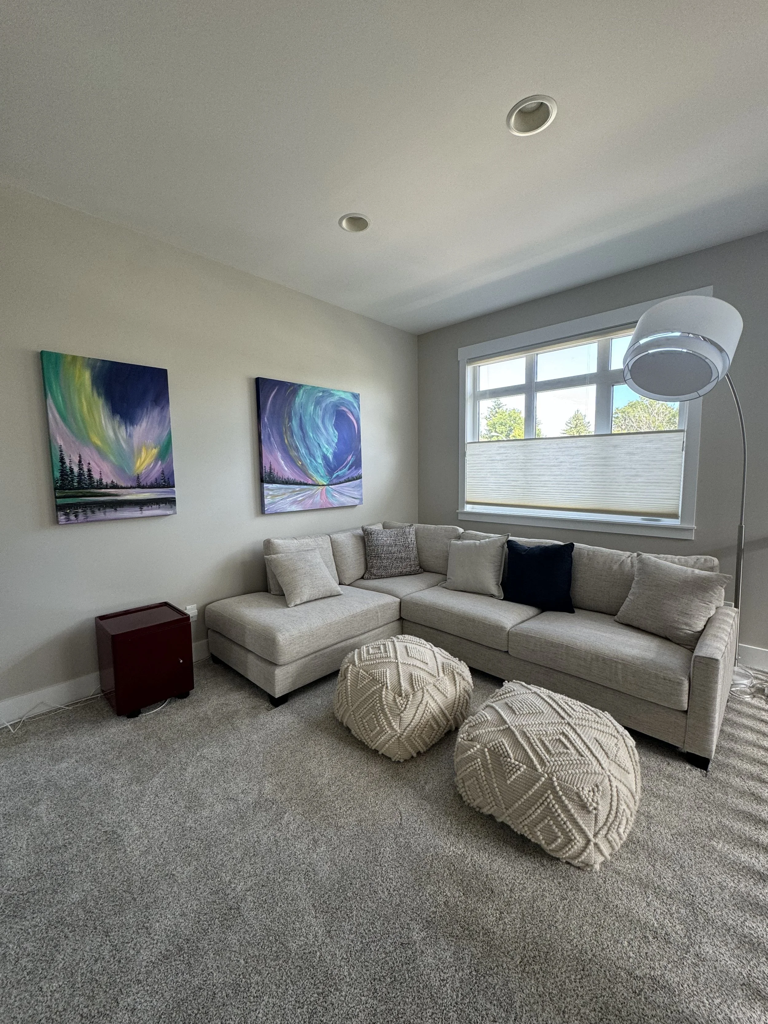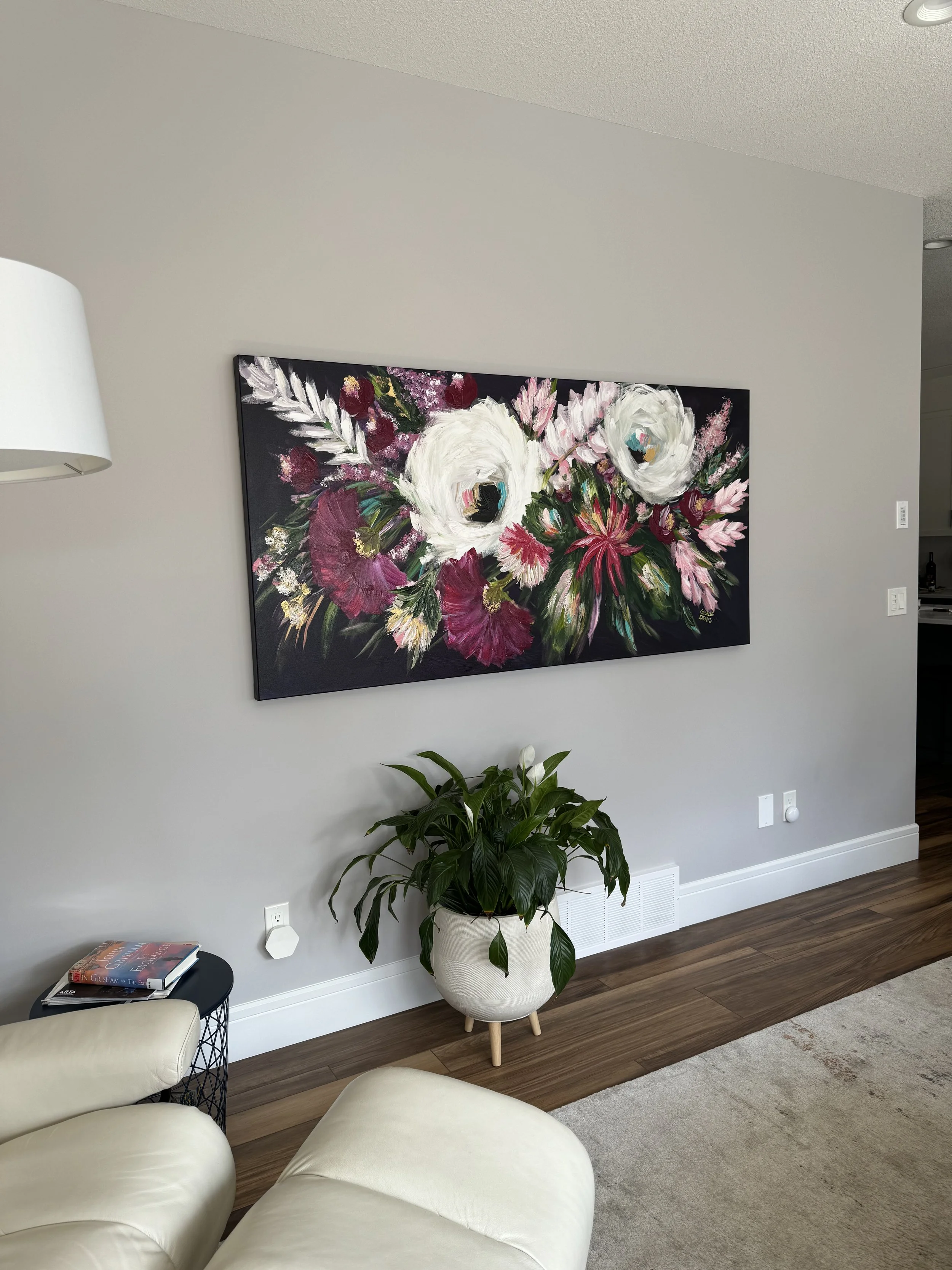 These are examples of Giselle’s in different spaces to help guide you when you are considering art for your space. If you are curious as to what shape a size should go into your space, consider these as good examples to help you in the art selection process. You can also send Giselle photos of your space and she can help with sizing and placement of art for your space. Whether you are looking for art for your home, office or place of business, Giselle is here to help.
