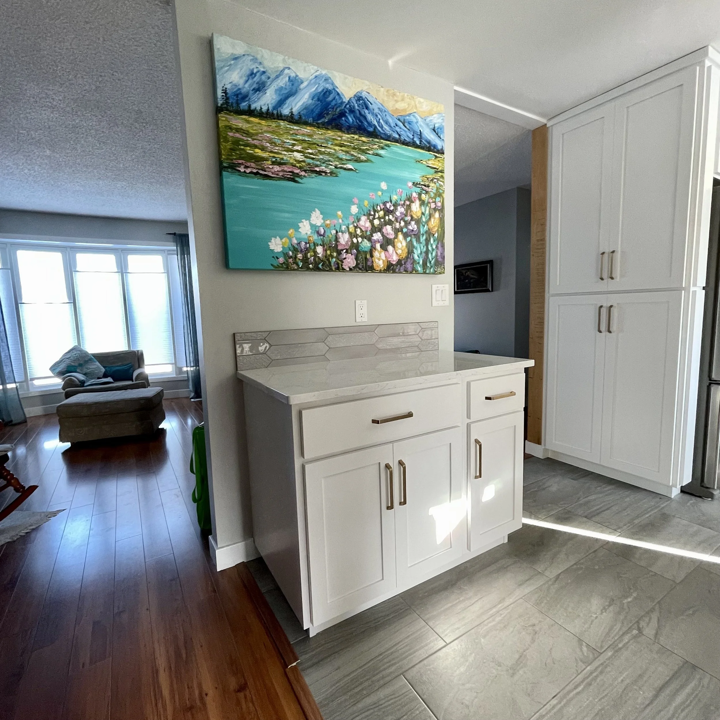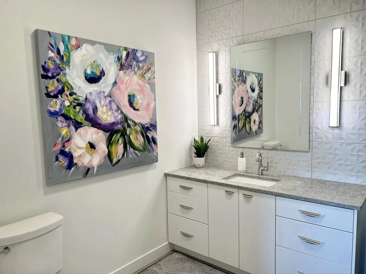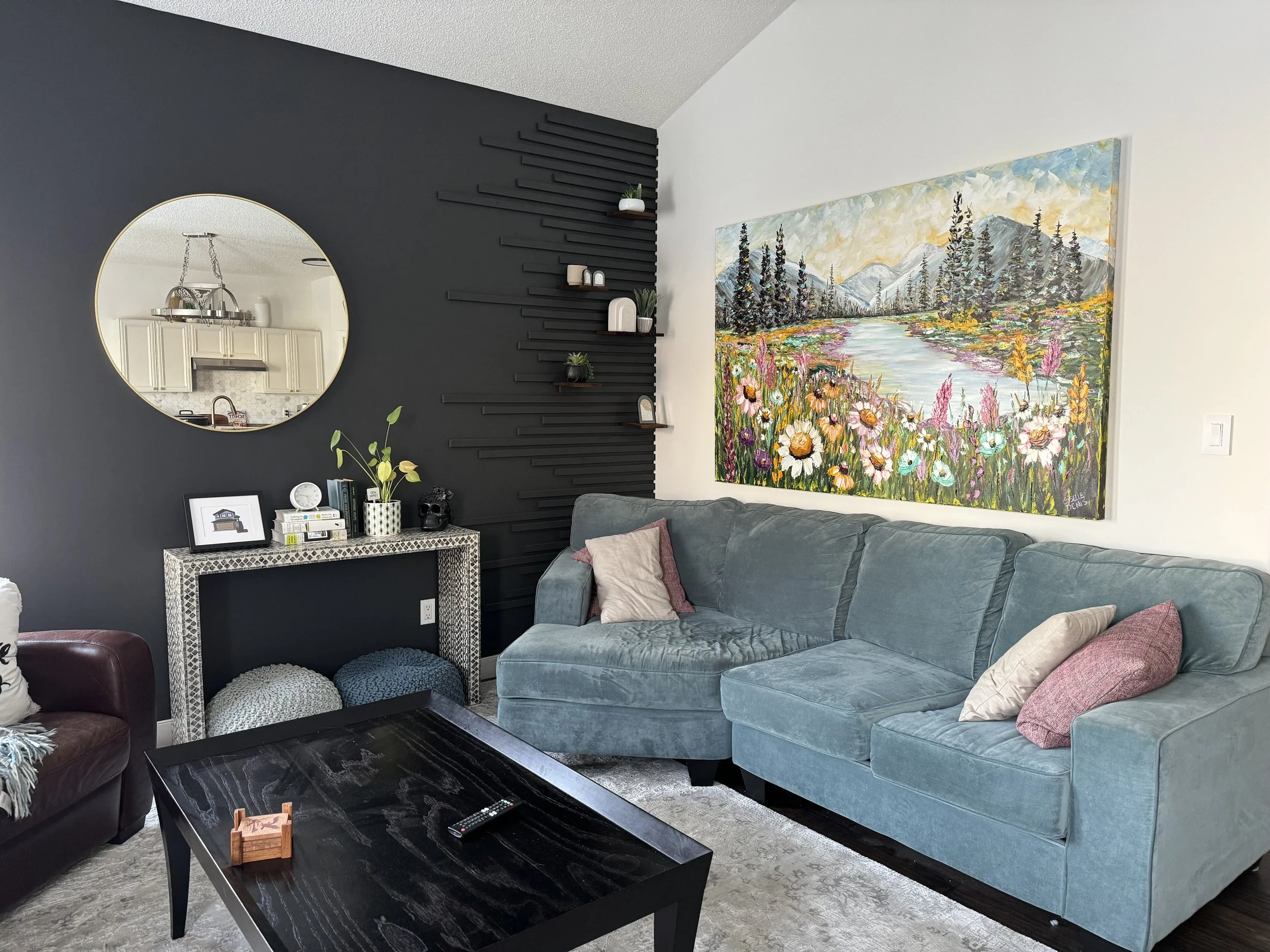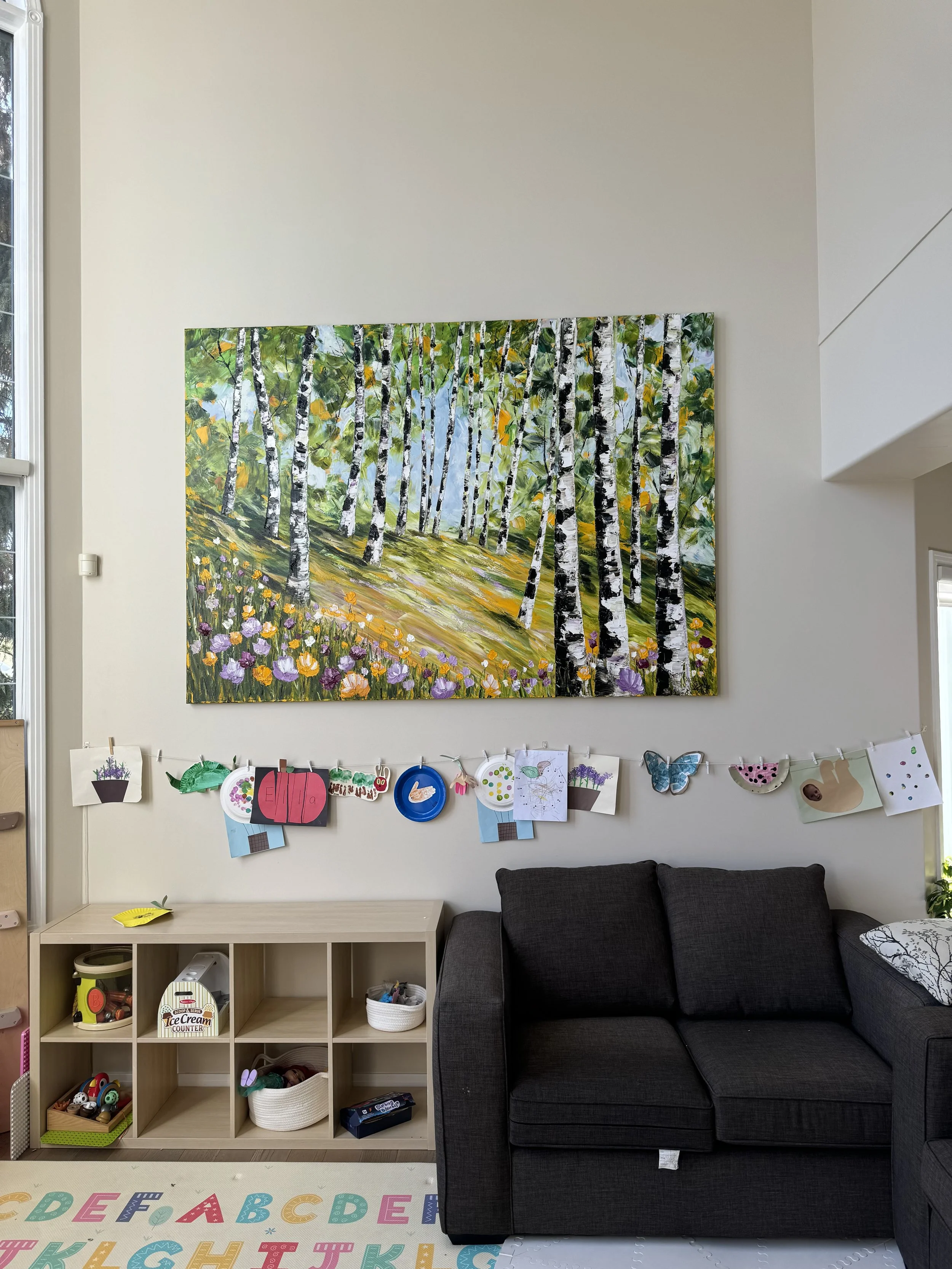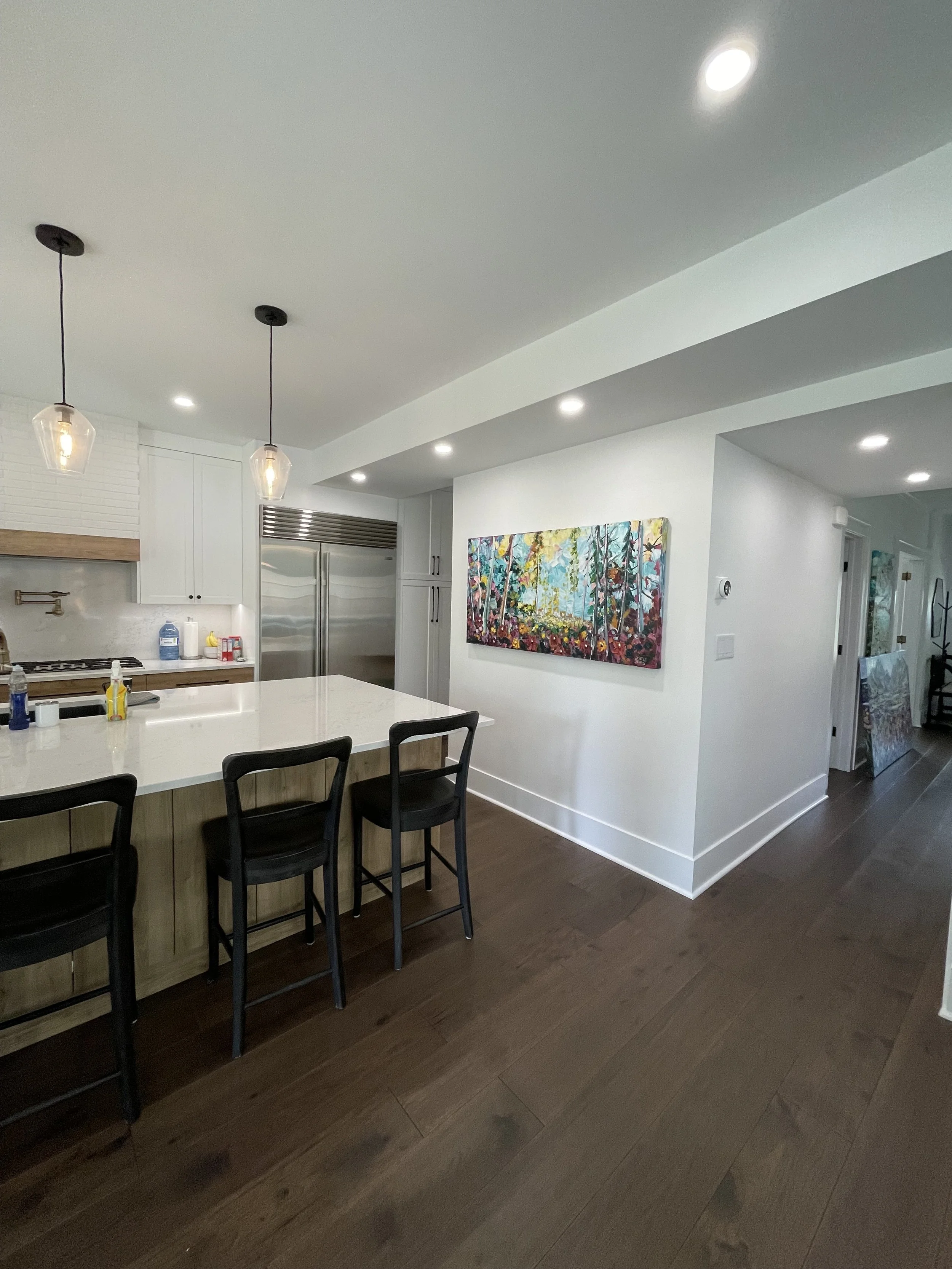 These are examples of Giselle’s in different spaces to help guide you when you are considering art for your space. If you are curious as to what shape a size should go into your space, consider these as good examples to help you in the art selection process. You can also send Giselle photos of your space and she can help with sizing and placement of art for your space. Whether you are looking for art for your home, office or place of business, Giselle is here to help.